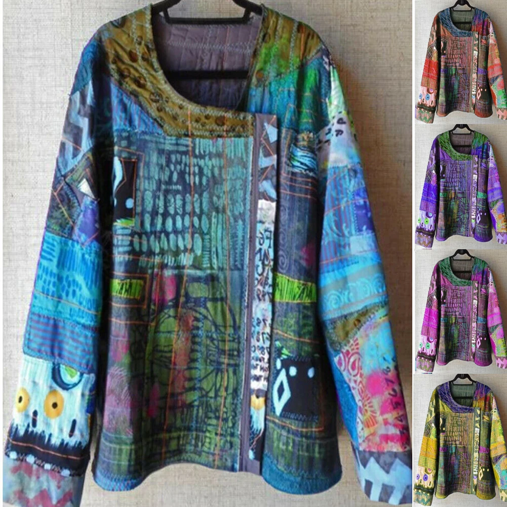 Женская блузка в этническом стиле, большие размеры, женские свободные этнические Рубашки, Топы, одежда, рубашка с длинным рукавом, повседневный Топ, Femme 2019 S-5XL