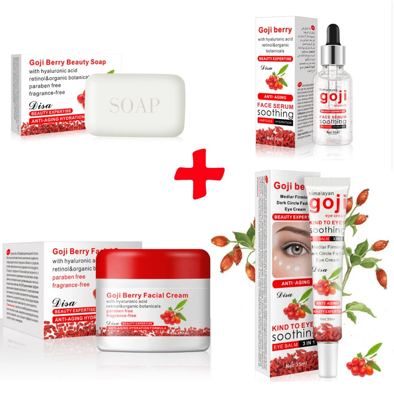 Оригинальное очищающее мыло для лица + Сыворотка годжи для лица + антивозрастной крем для лица + кремы для кожи вокруг глаз, восстанавливающий отбеливающий крем, уход за кожей