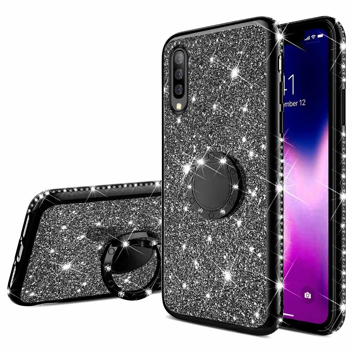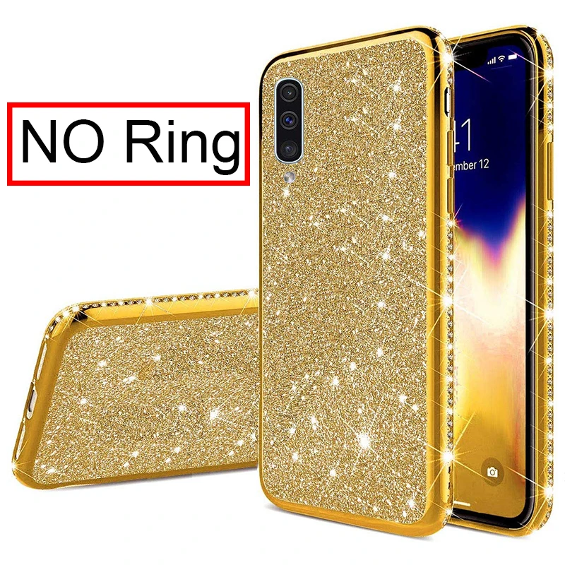 Мягкий чехол со стразами для Samsung Galaxy A10 A20 A30 A40 A50 A70 S8 S9 S10 5G Plus S10e Note 10, блестящий чехол с кольцом на палец