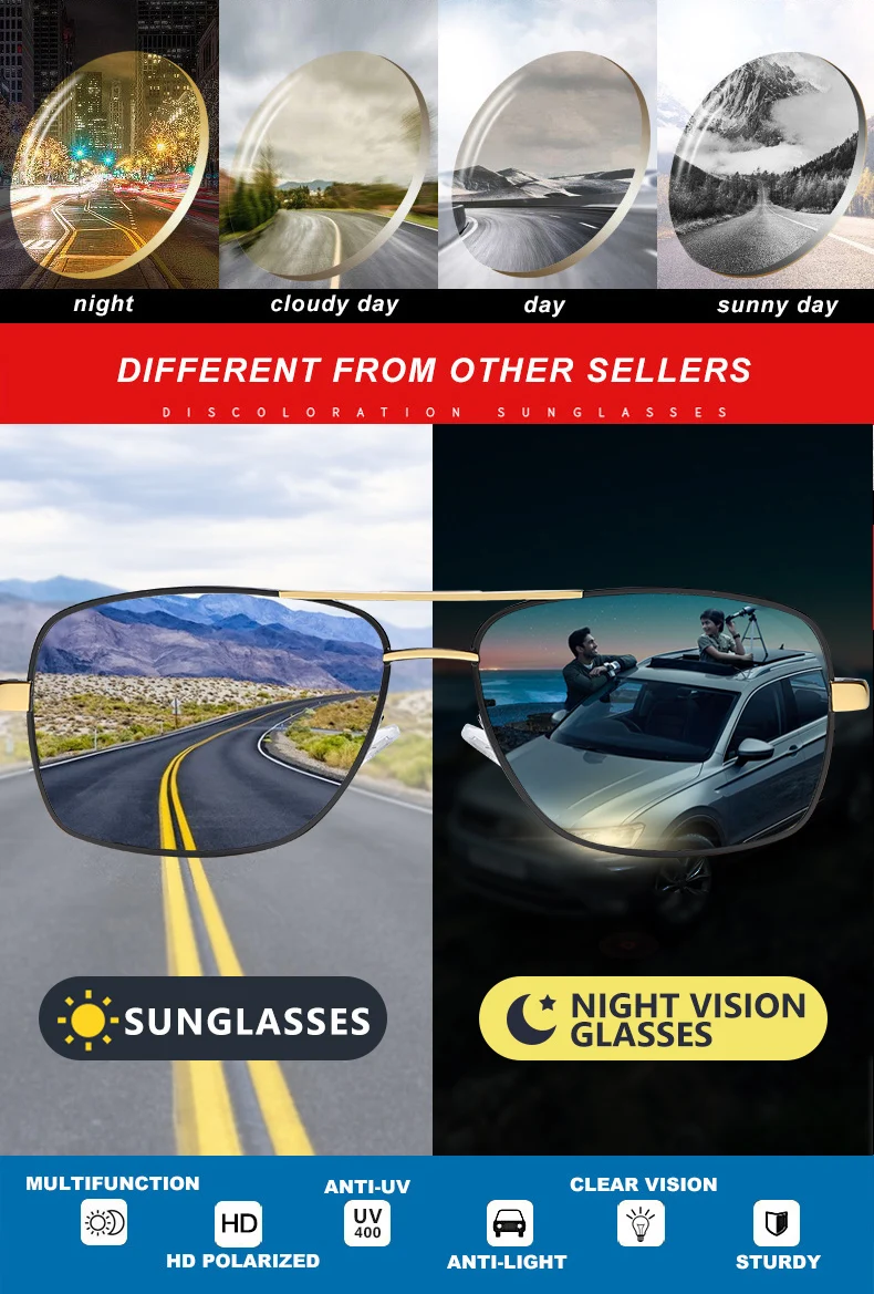 Солнцезащитные очки унисекс, Поляризованные, фотохромные, дневное и ночное видение