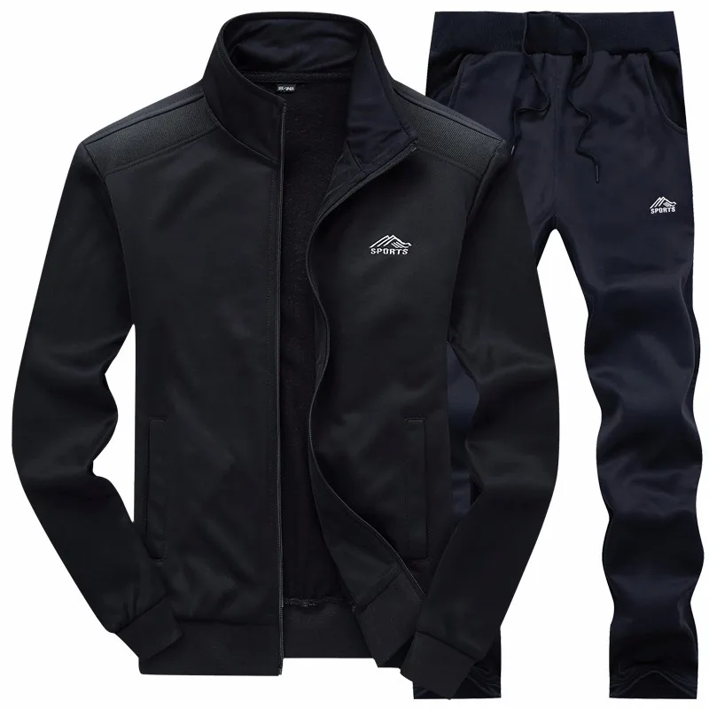 Мужской костюм из 2 предметов, теплый спортивный костюм на молнии с вышивкой и спортивные штаны, 2021