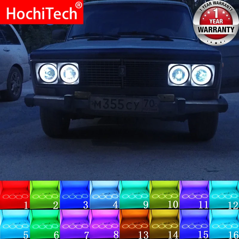 Новейшая фара многоцветная RGB Светодиодный лампа ангельские глазки гало кольцо глаз DRL RF пульт дистанционного управления для Лада ваз 2106 1976 - 2001 аксессуары