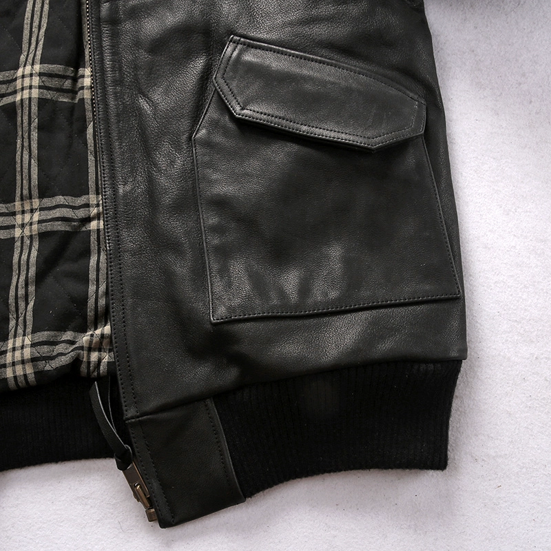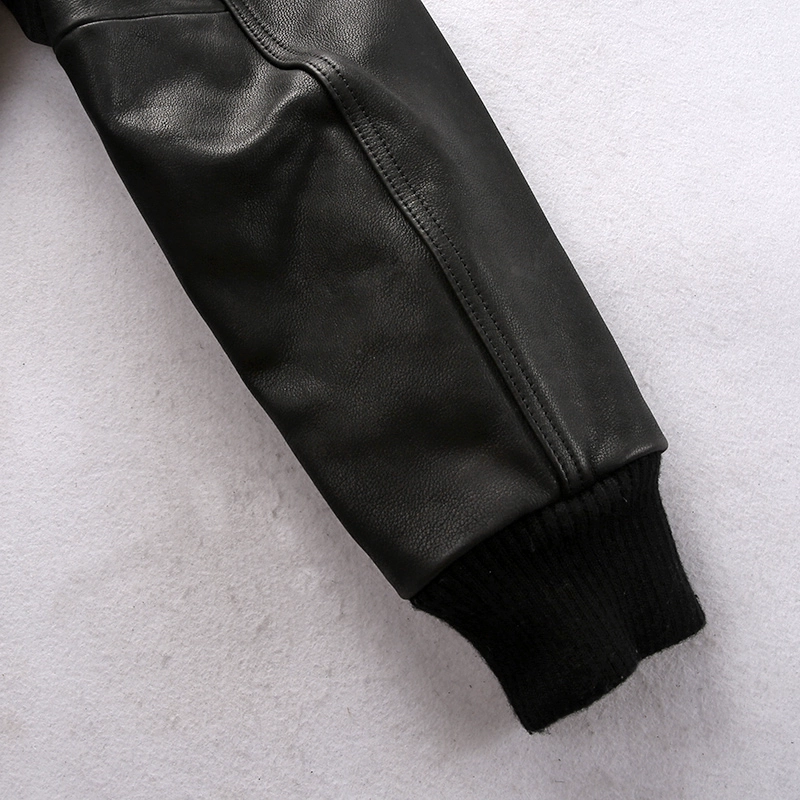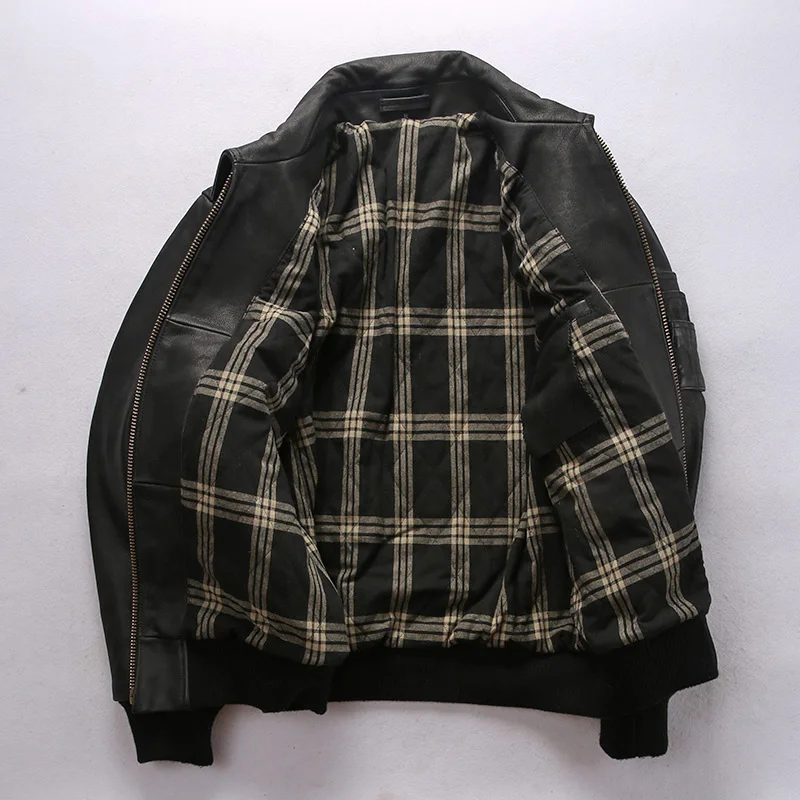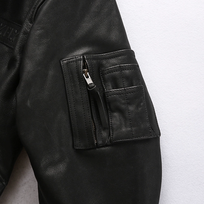 Куртка-бомбер из натуральной овечьей кожи, в стиле милитари