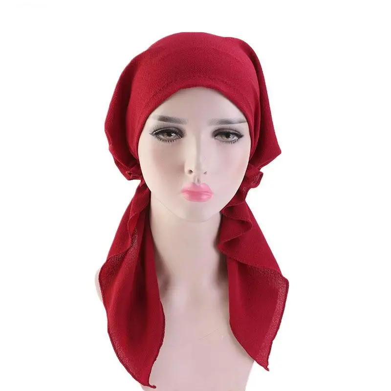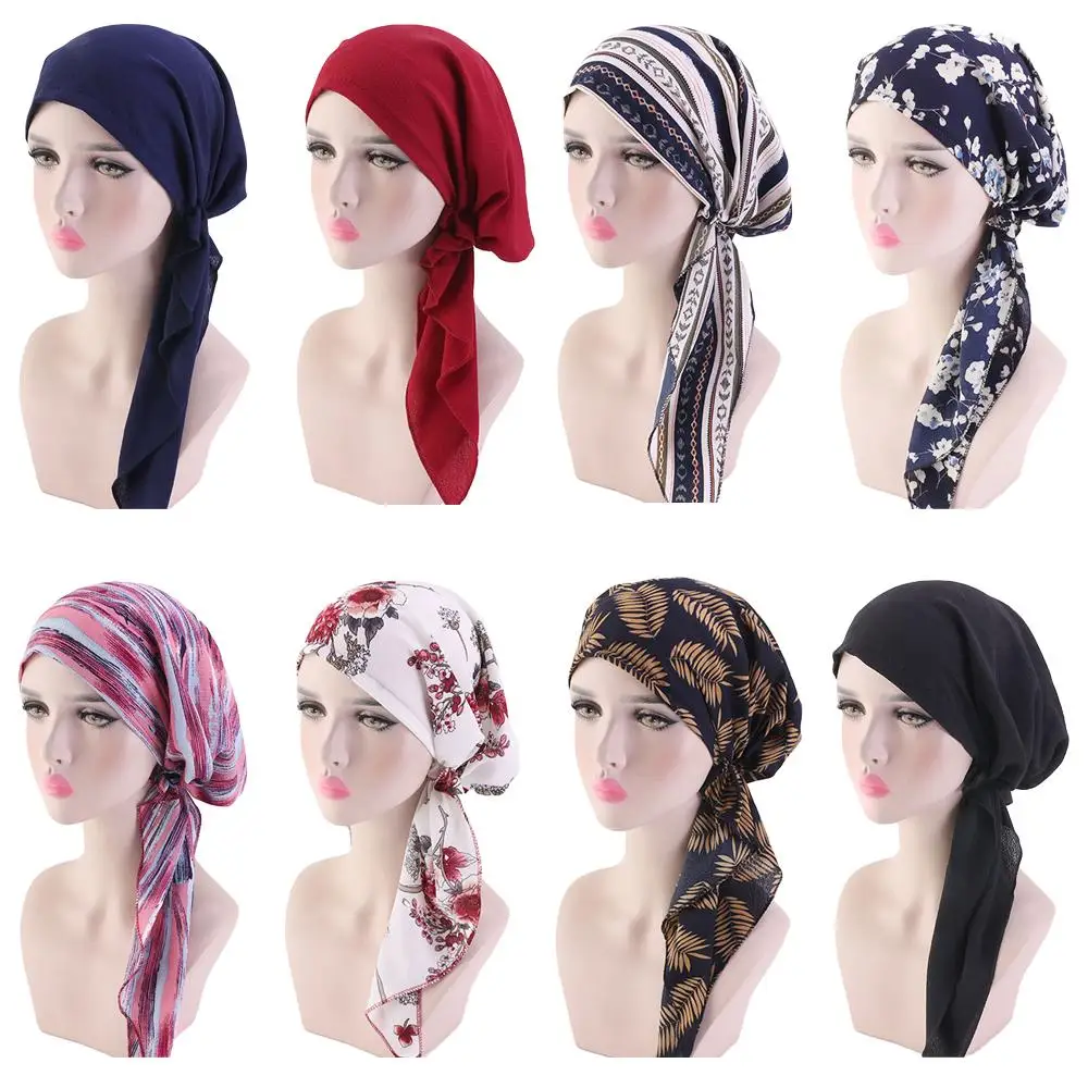 Мусульманский женский шарф-снуд на голову, хиджаб Кепка Chemo тюрбан предварительно завязанный головной убор Бандана раковая потеря волос головной убор стрейч шляпа Hijabs