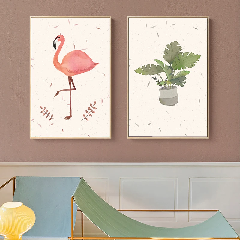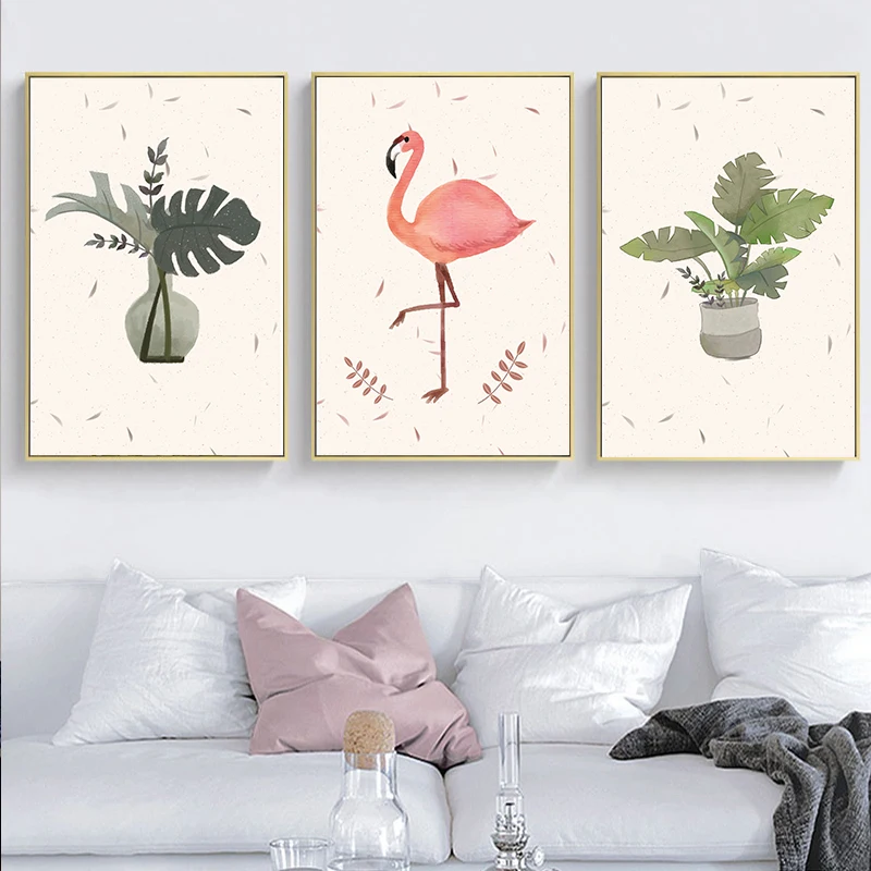 Растения для акварельных красок листья настенное Искусство Плакат и печатная графика Фламинго скандинавские холст живопись, декоративная картина Современное украшение дома