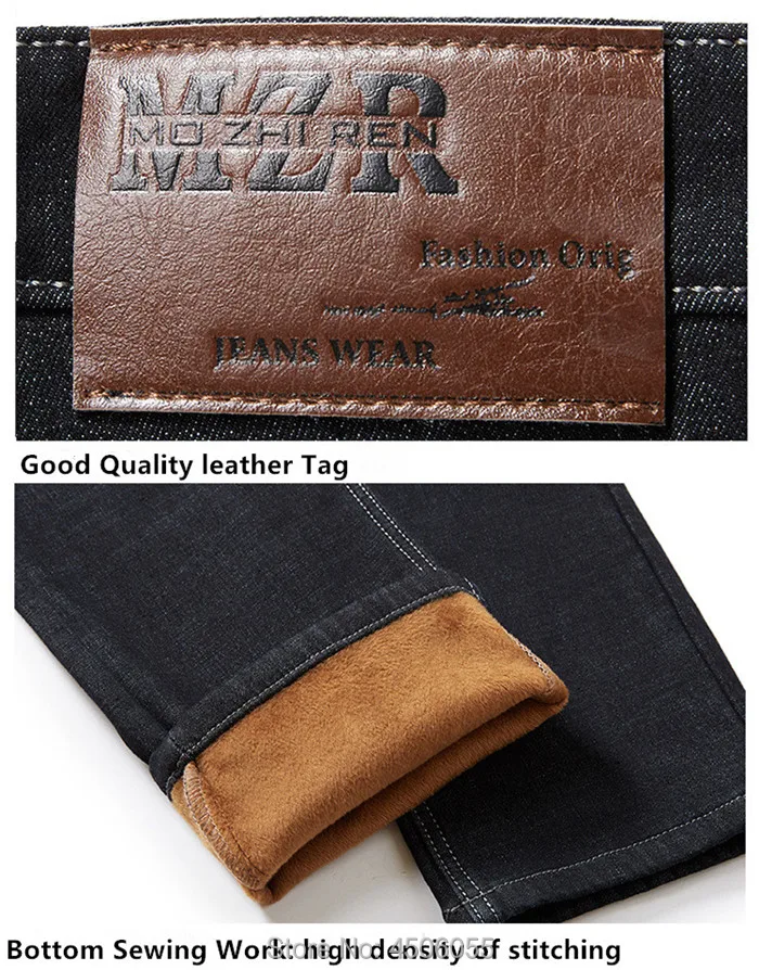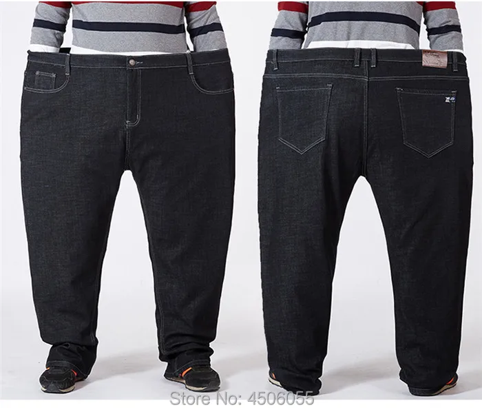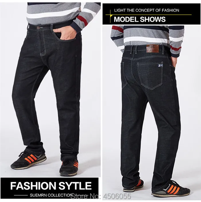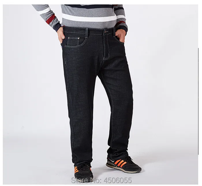 Зимние джинсы, мужские теплые джинсовые бриджи 42 46 48 50 52 150 кг, черные брюки с эластичной завышенной талией, мужские флисовые брюки, утепленные джинсы