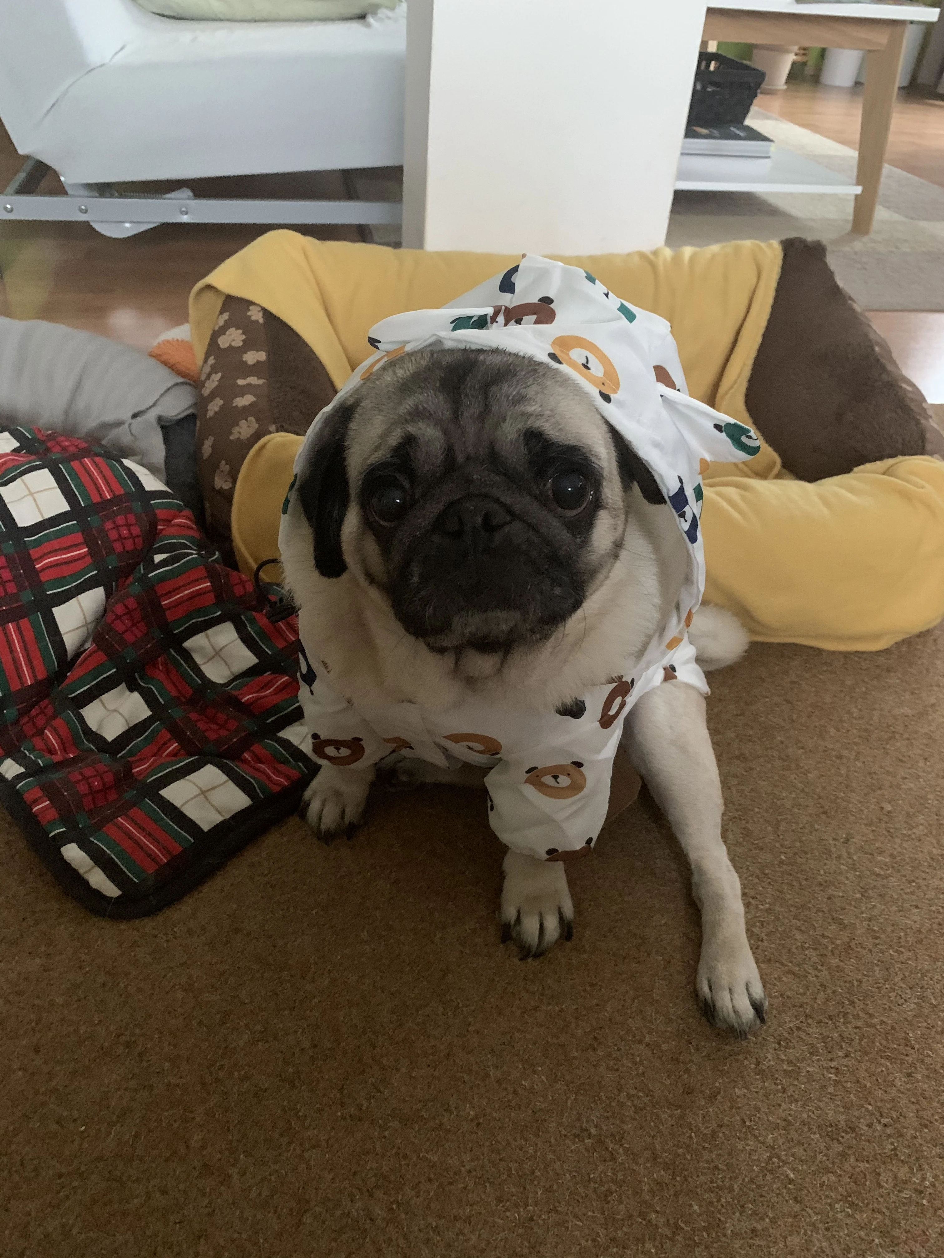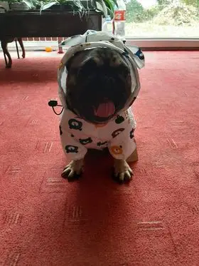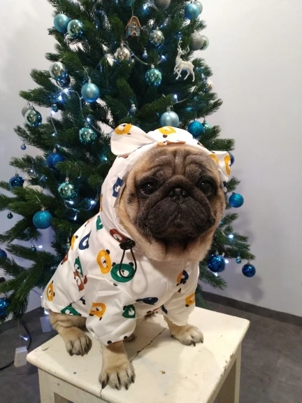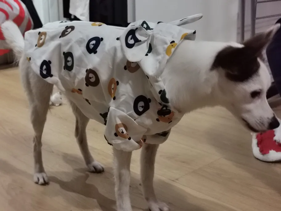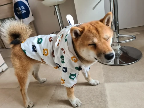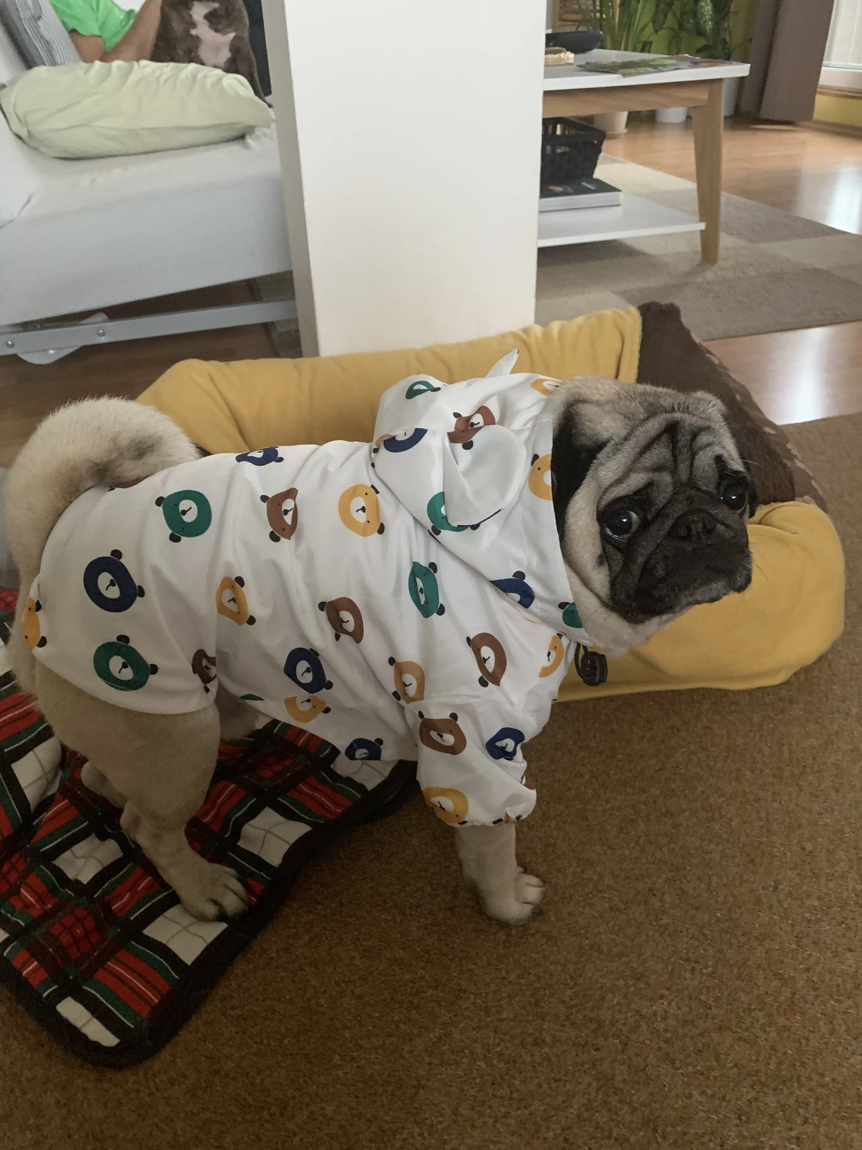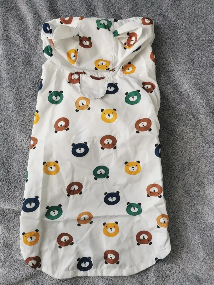 Классный дождевик!! На французского бульдога подошёл очень хорошо, чуть длинноват по спине, но не критично!!