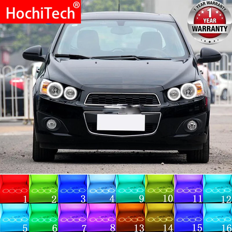Многоцветная светодиодная фара RGB Angel Eyes Halo Ring Eye DRL RF с дистанционным управлением для Chevrolet AVEO Sonic T300 2011-2014, аксессуары