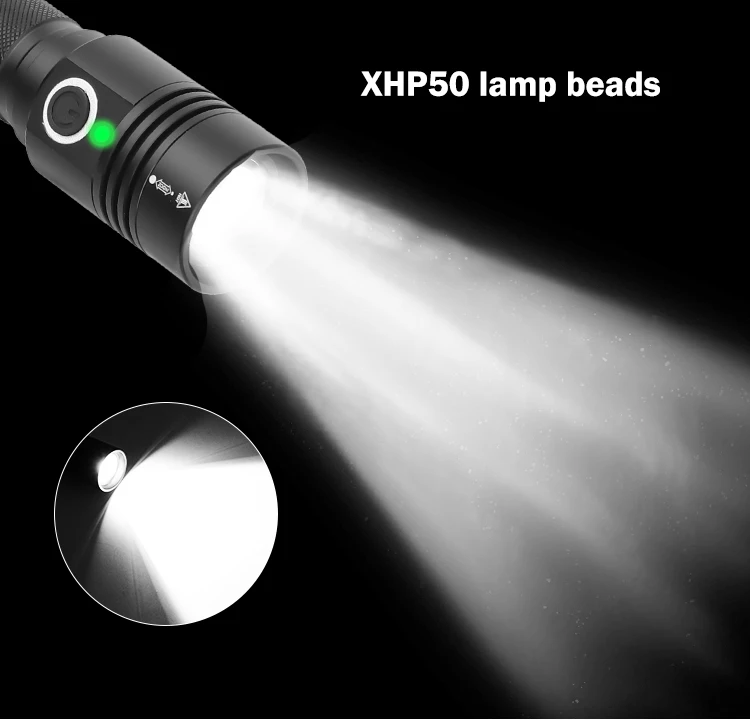 Название: фонарик XHP50Модель светодиодный бусины: CREE XHP50Материал корпуса: алюминиевый сплавМатериал линз: выпуклая линзаЦвет излучения: белый светильникТип батареи: 1*18650 аккумуляторная батарея (не входит в комплект)Зарядное устройство: Micro usbMicro USB Зарядное устройство Выходное напряжение: 5,0 VВходной ток фонаря: 5,0 VХарактеристики: дисплей питания, затемнение Зума