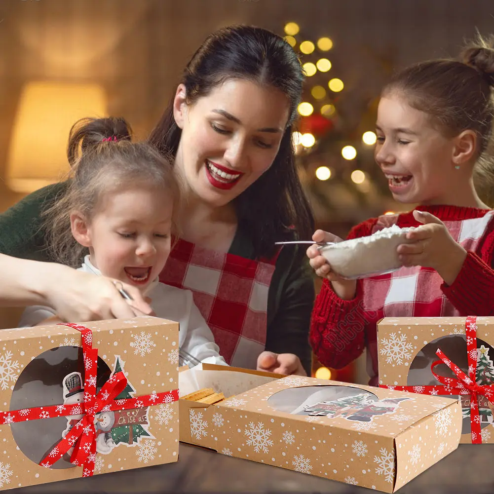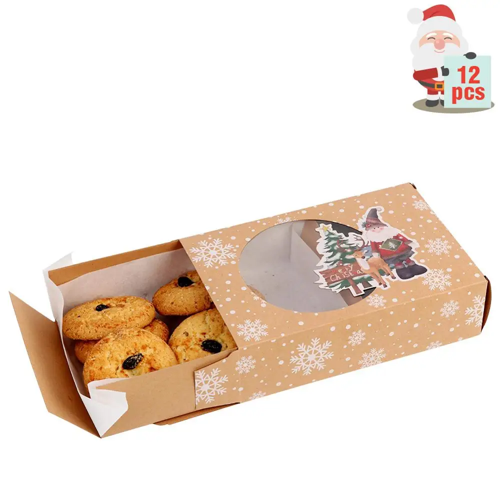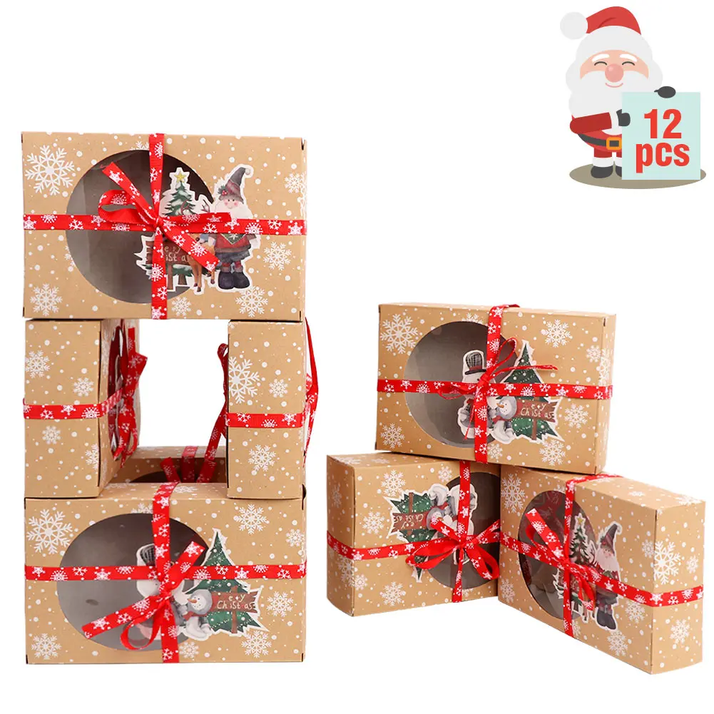 OurWarm 12 шт. рождественские подарочные коробки для печенья, сувениры вечерние, коробка из крафт-бумаги с прозрачным окошком из ПВХ, коробка для конфет