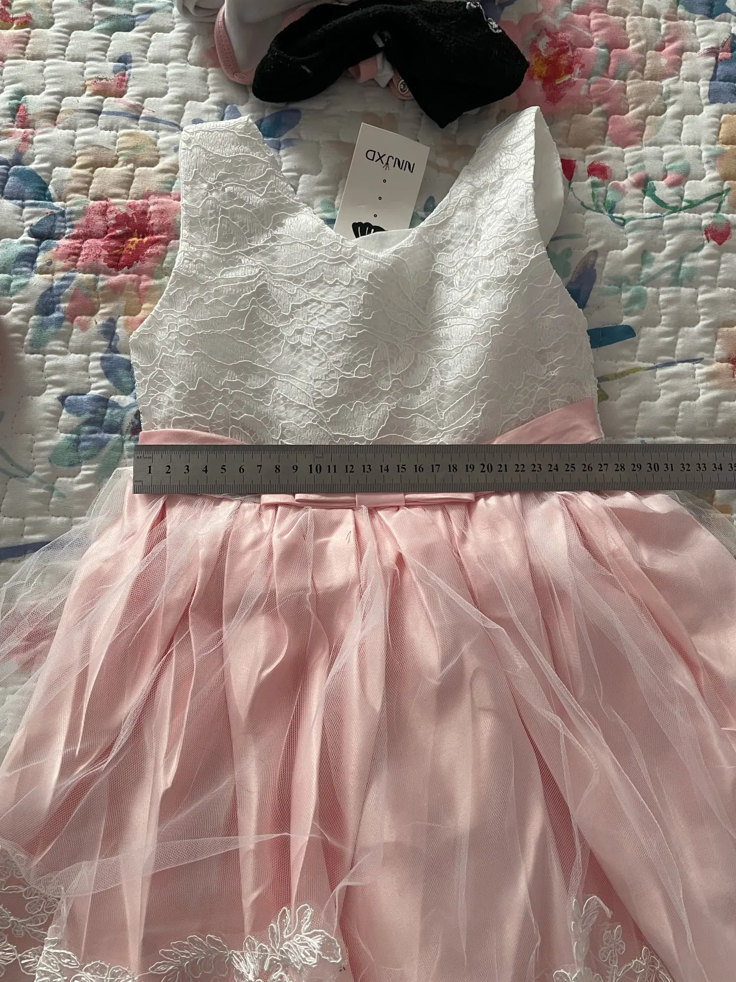Это прекрасно! Моей дочери 1 год и 5 месяцев, она носит размер 3 из Чили, поэтому я купил размер 3, и это было превосходно, но ниже колен. Кажется, хорошего качества и хорошей отделки. Обувь тоже у того же продавца! Красиво все!
