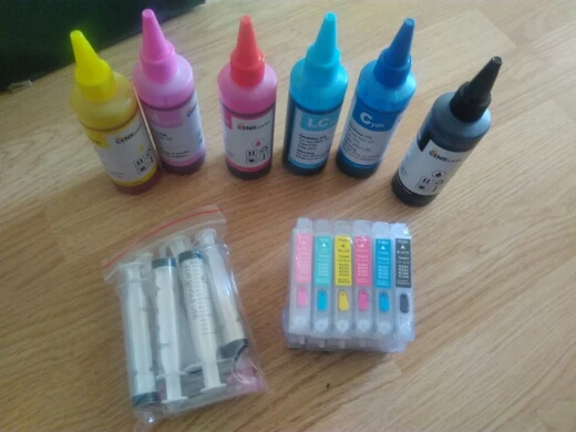 Товар пришёл быстро и в срок. Хорошо упакован. Комплектация соответствует описанию. Заправил картриджи, вставил в принтер. Принтер EPSON R220 поругался, что картриджи не оригинальные, но начал печатать. Напечатал плохо (жёлтый и чёрный цвет не печатался). Пару раз провёл тест дюз (см. каждый к своему принтеру), автоматически почистился и всё отлично запечатал. Покупкой полностью доволен. Продавца рекомендую!