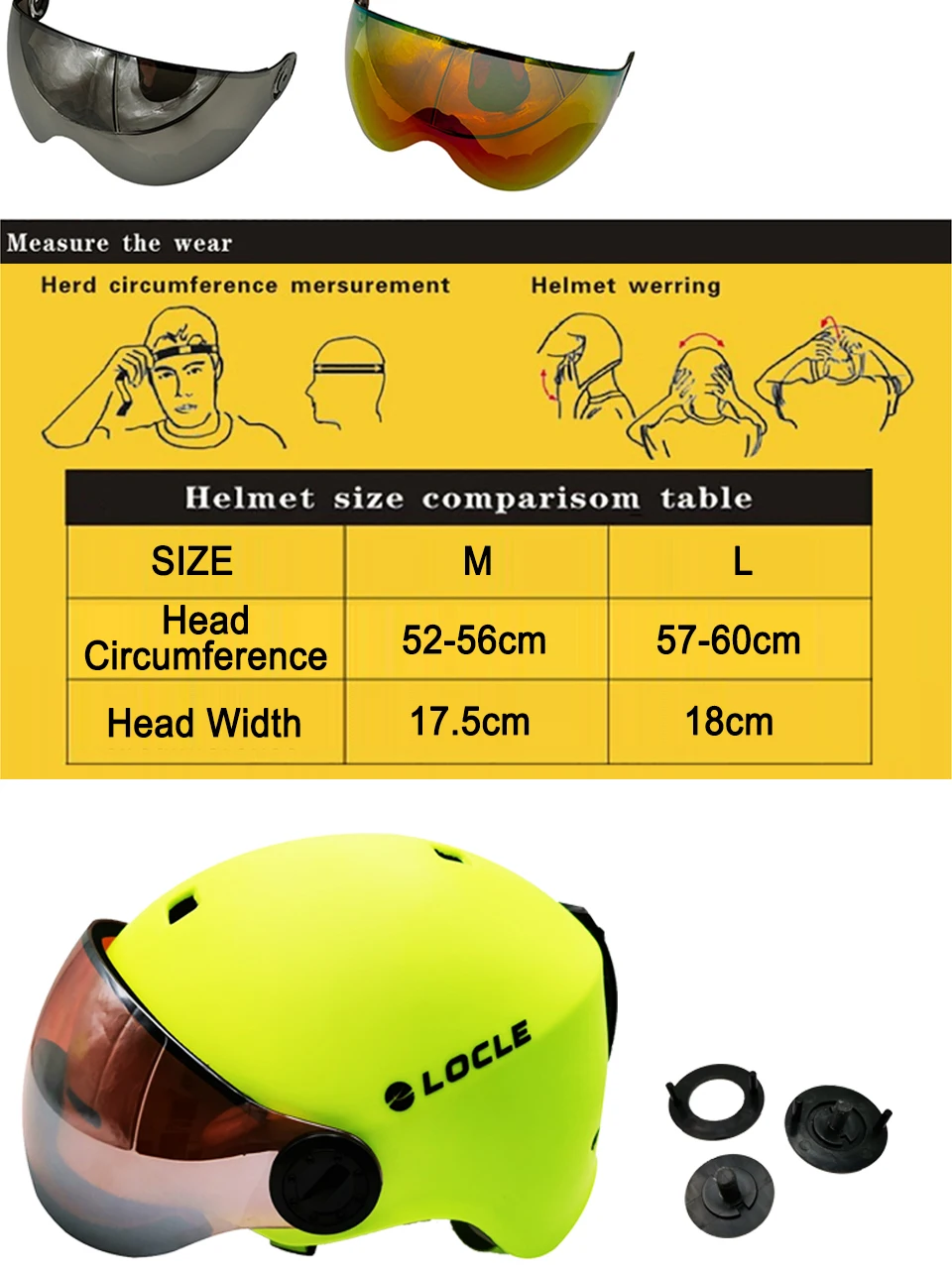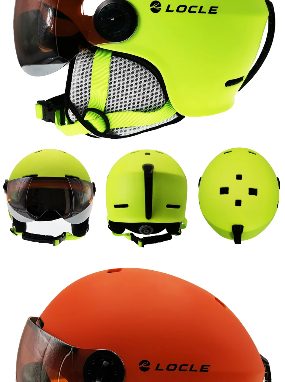 Шлем горнолыжный LOCLE с очками, цельнолитой, для зимних видов спорта, шлем для езды на снегоходе г., лыжный, сноубордический шлем с козырьком