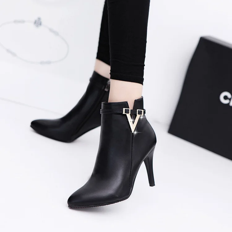 Весна-Осень 2021 на тонком высоком каблуке с острым носком из искусственной кожи на молнии сексуальные женские ботильоны YYJ76