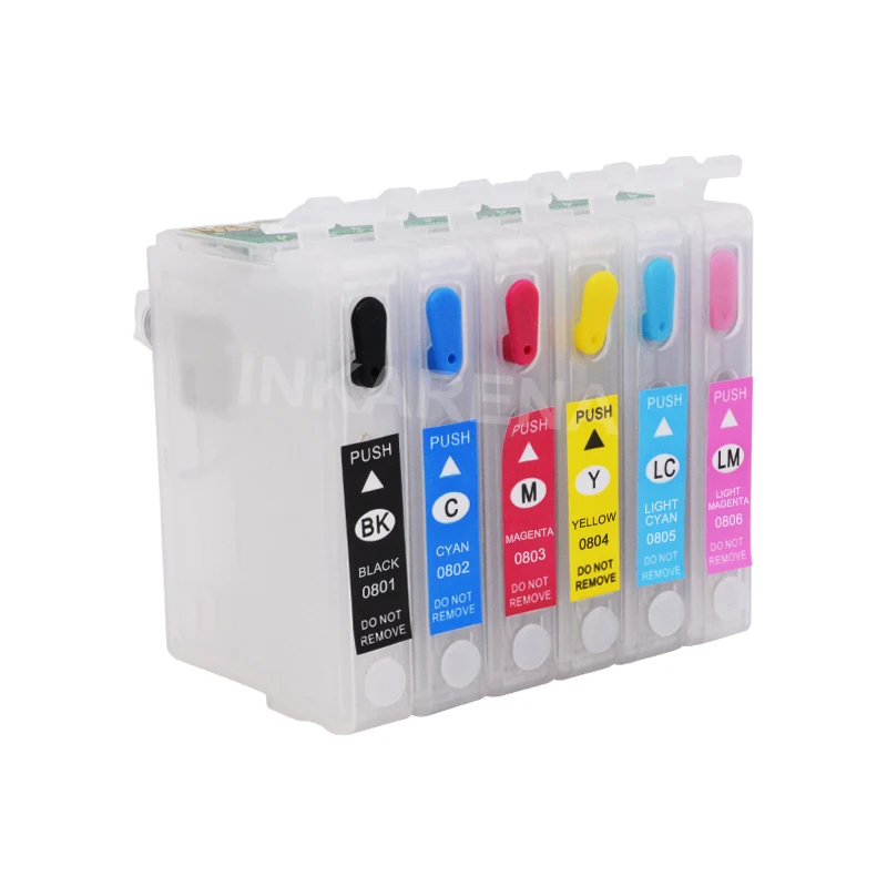 INKARENA T0801 пустые многоразовые чернильные картриджи + 6 100 мл бутылка для принтера чернила для Epson Stylus Photo P50 T59 R265 270 285 290 360