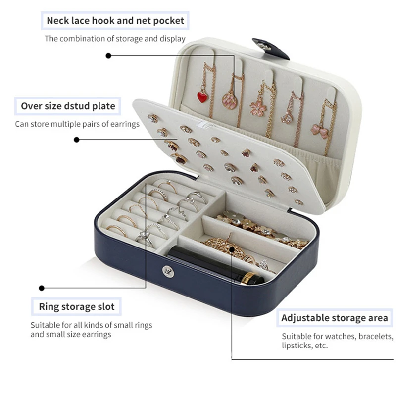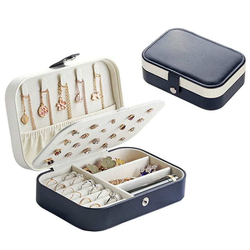 Мини-органайзер, двухслойный портативный чехол из искусственной кожи для хранения серег, колец, ожерелий, ювелирных изделий