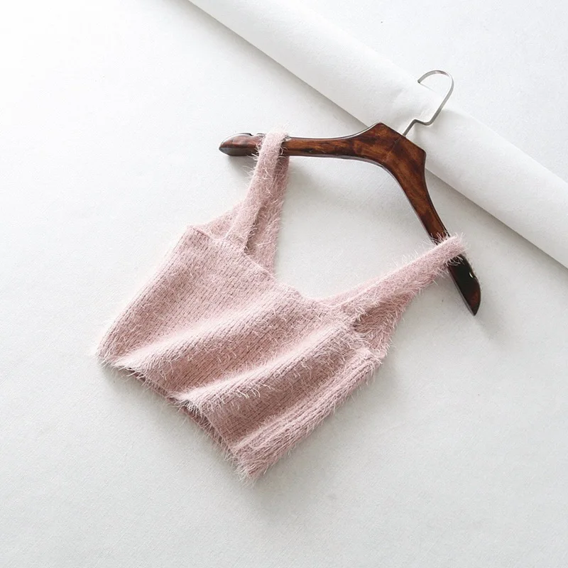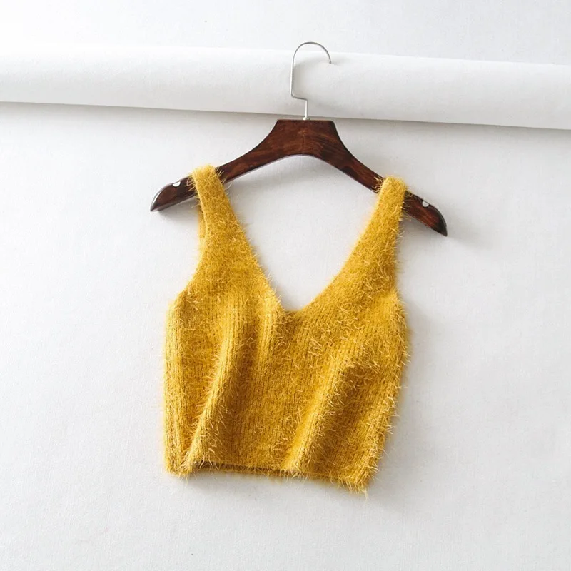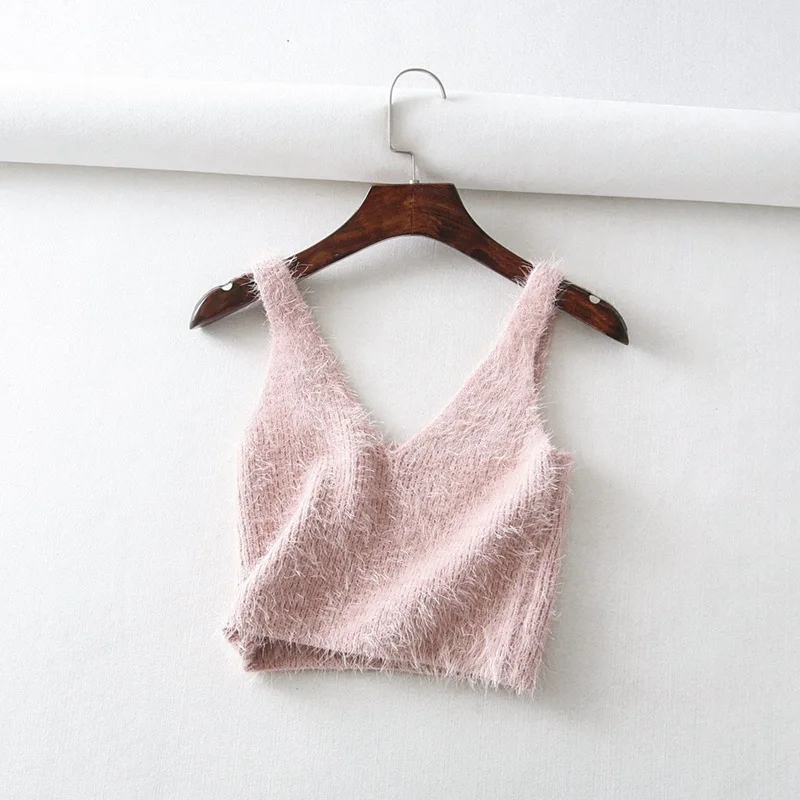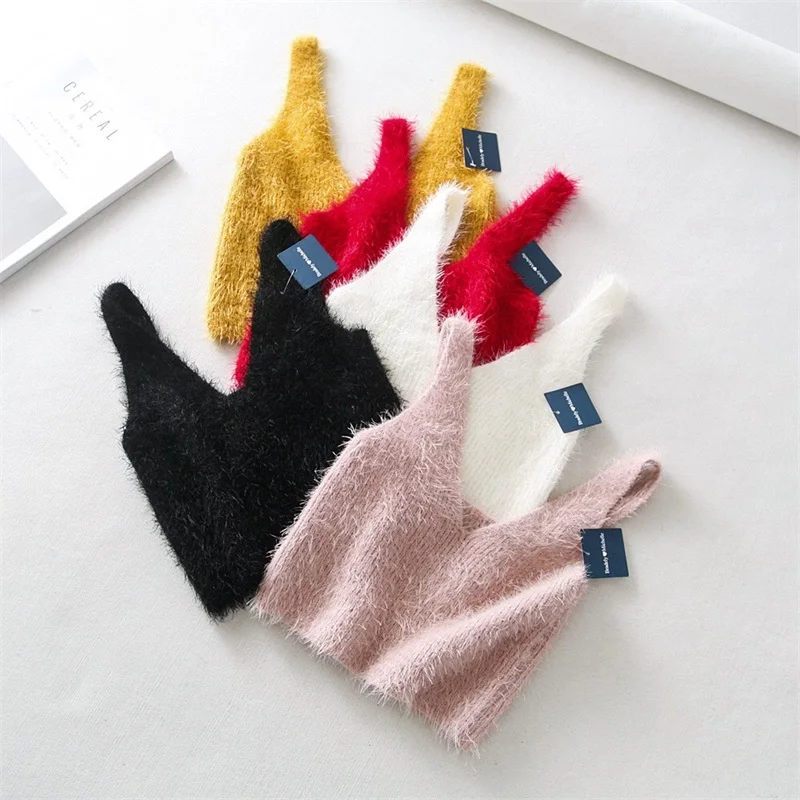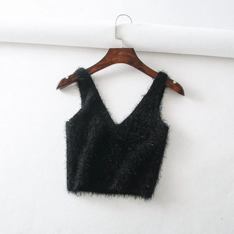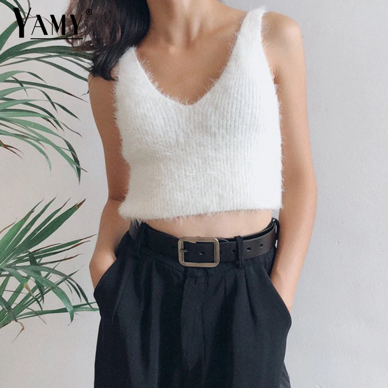 Женский пушистый топ, белый укороченный топ без рукавов с v-образным вырезом, мягкий уличный Топ, 2019