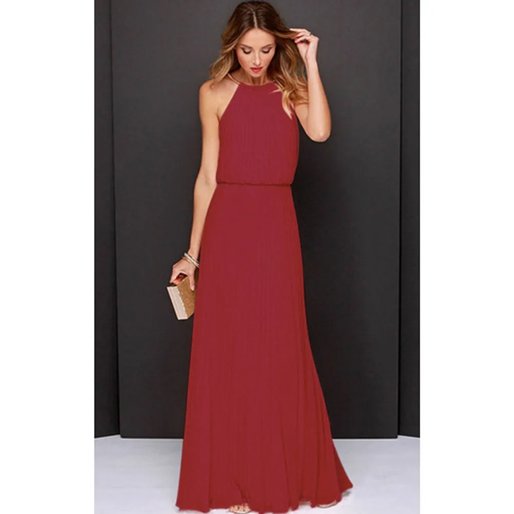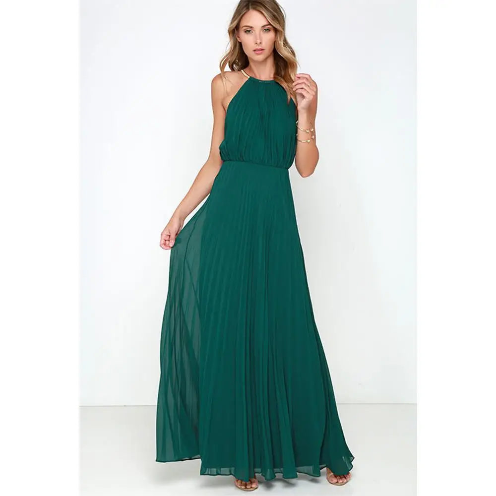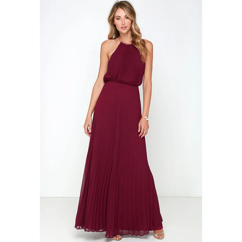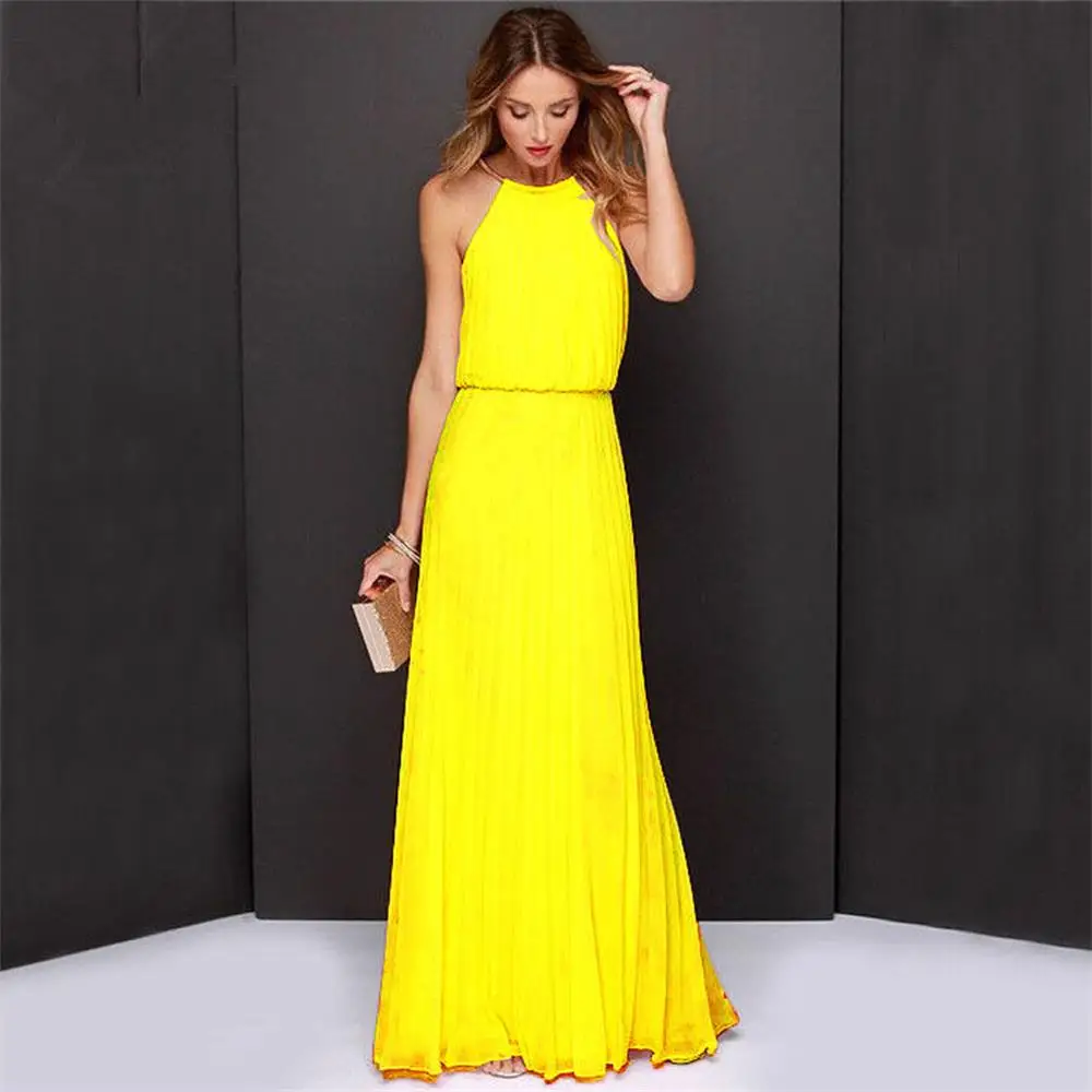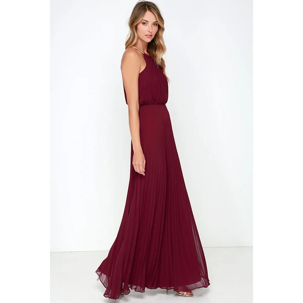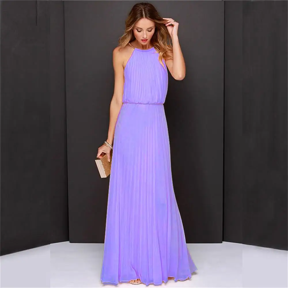 Женское шифоновое платье-макси без рукавов, Элегантное повседневное длинное Плиссированное праздничное платье, лето 2022