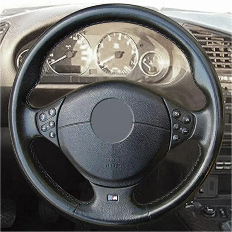 Черная натуральная кожа ручная работа ручная швейная чехол рулевого...