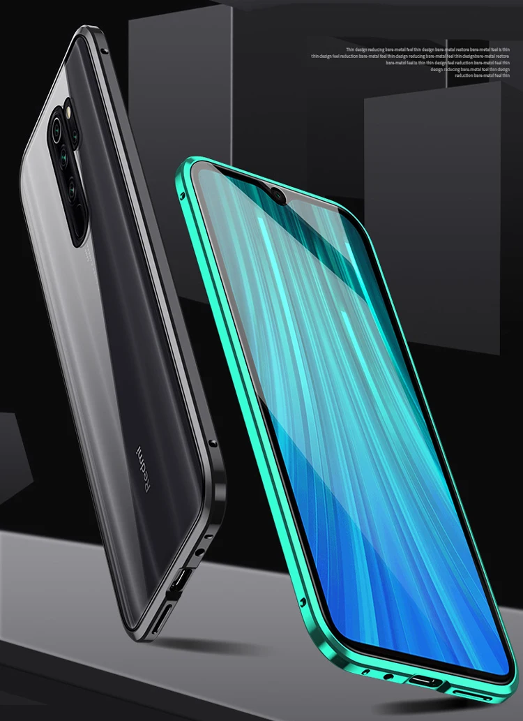 Металлический магнитный чехол для Redmi Note8 с магнитной адсорбцией, двойное стекло для Redmi NOTE 8 Pro, закаленное стекло, двусторонний чехол