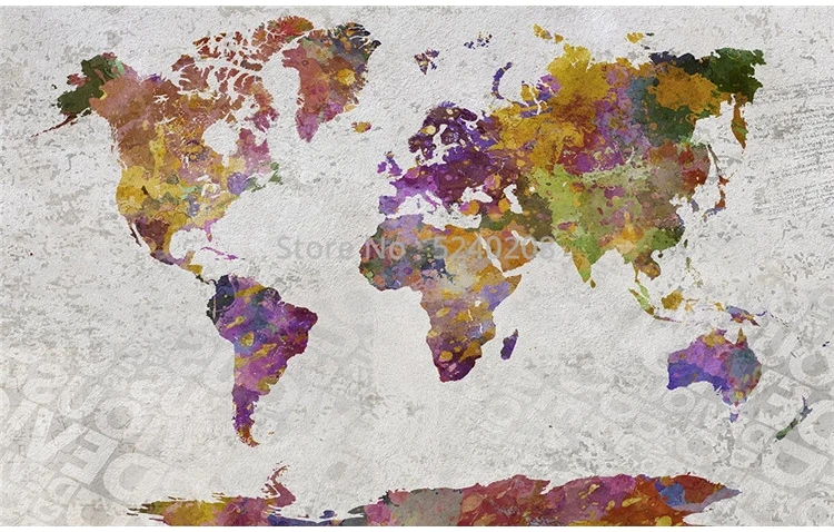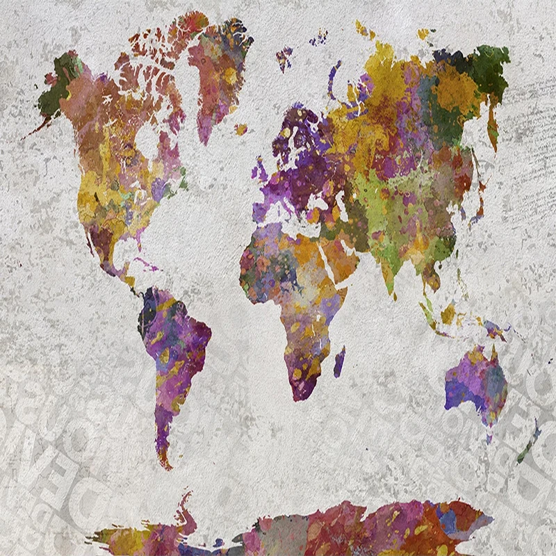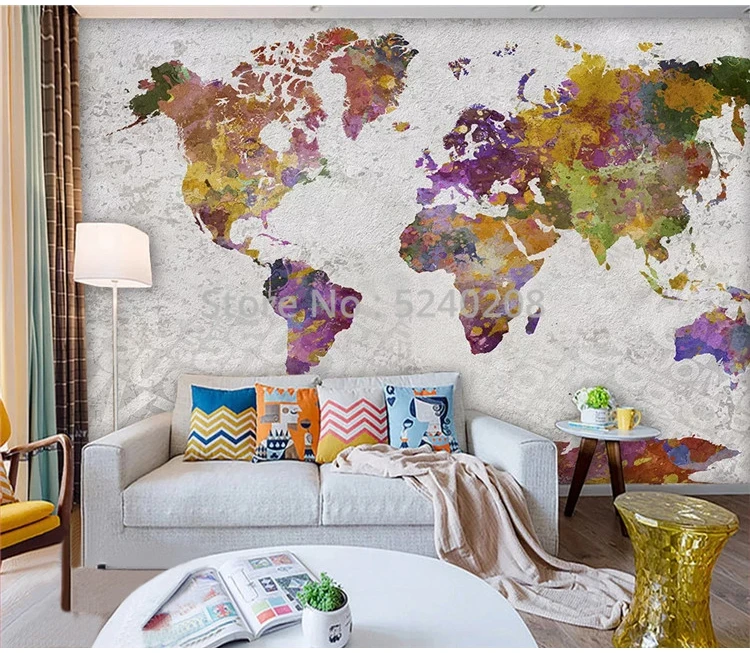 Самоклеящиеся водонепроницаемые обои на заказ, Современная ручная роспись карта мира акварелью 3D настенная живопись, детские наклейки для спальни