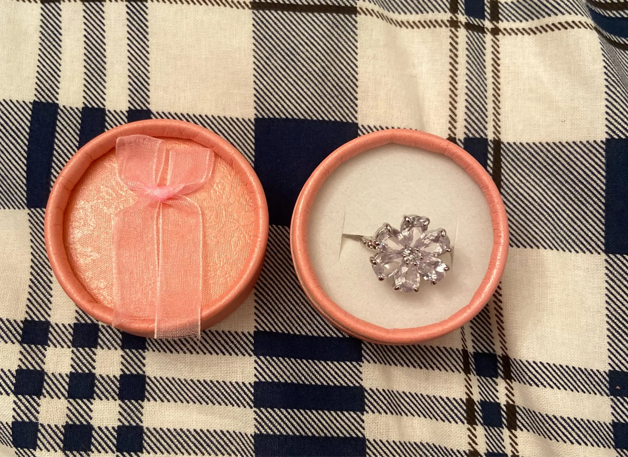 Кольцо на фотографии розовато-сиреневое. На самом деле прислали белое. Заказ пришел через два месяца. Я разочарована.
