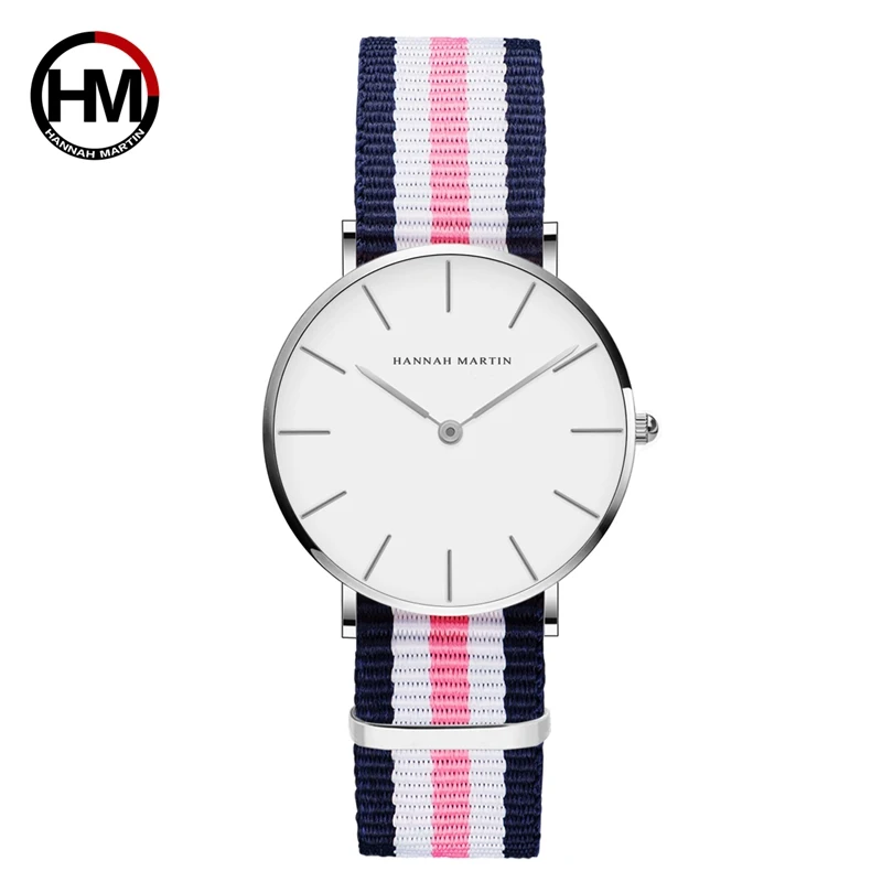 Часы наручные японские кварцевые, модные повседневные водонепроницаемые для молодых девушек, с нейлоновым ремешком