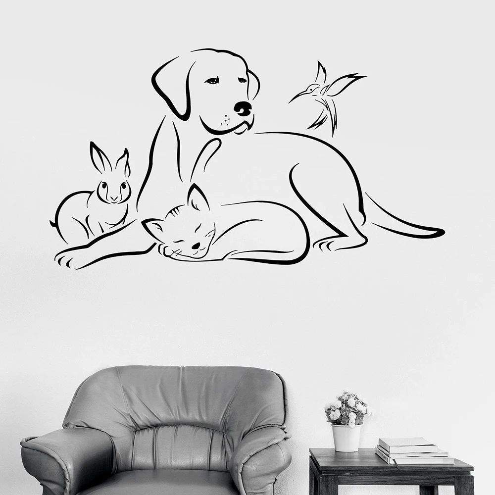 Виниловая наклейка на стену с животными для гостиной, собаки, птицы, кошки, ветеринария, настенные наклейки для домашних животных, Современное украшение дома, W371