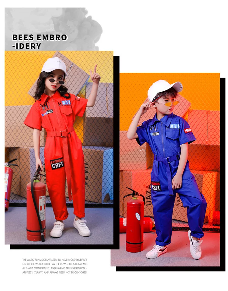 Детская крутая одежда в стиле хип-хоп с короткими рукавами синий и красный Свободный комбинезон для девочек и мальчиков, костюмы для джазовых танцев, Одежда для танцев