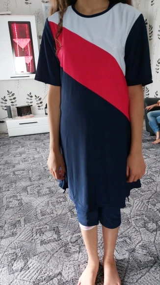 очень красивый буркини взяла на размер больше ношу м купила Lв самый раз покупкой довольна доставка очень быстрая где-то больше неделя