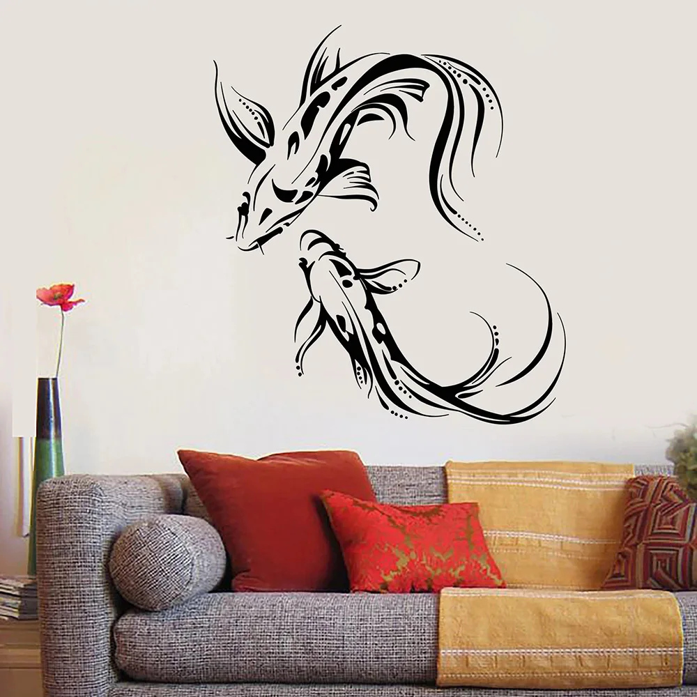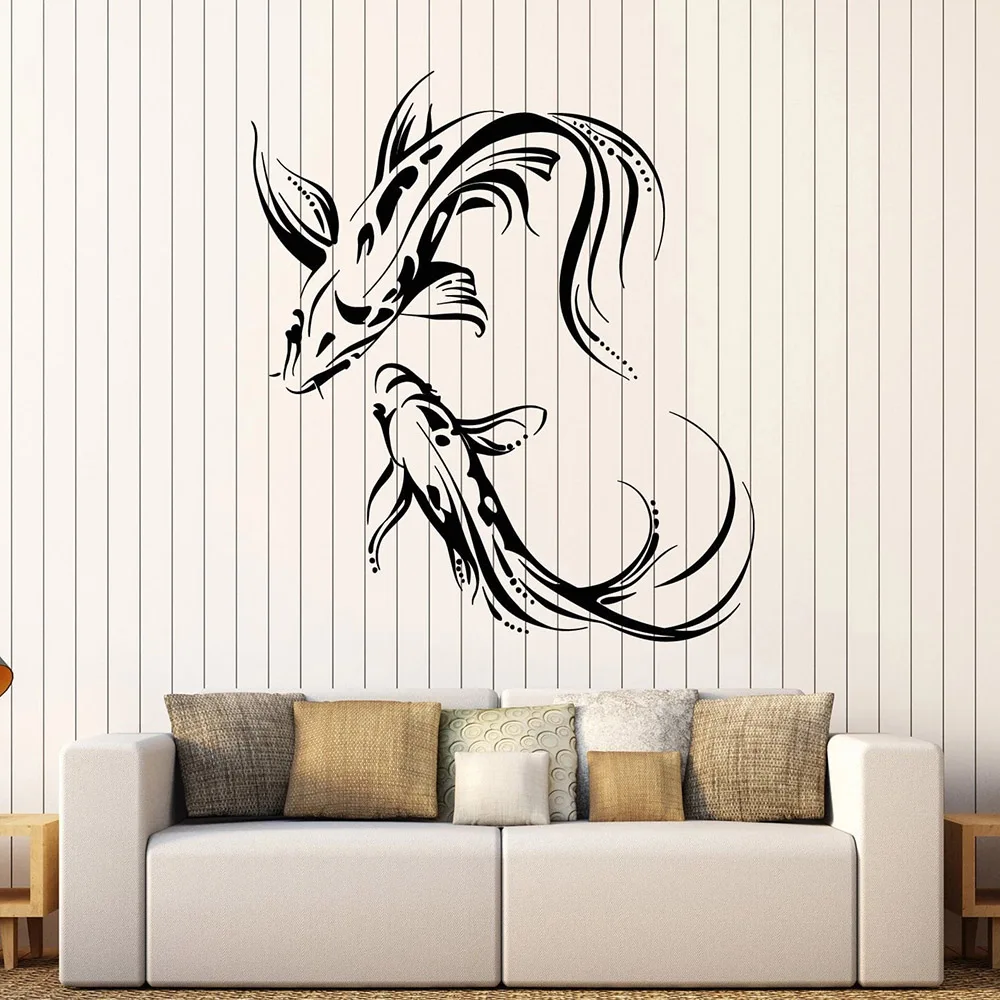 Виниловая наклейка на стену Koi Carp, наклейки на стену в гостиную, азиатскую, японскую рыбу, буддизм, для магазина, кухни, художественное украшение, настенная живопись W375