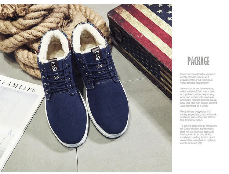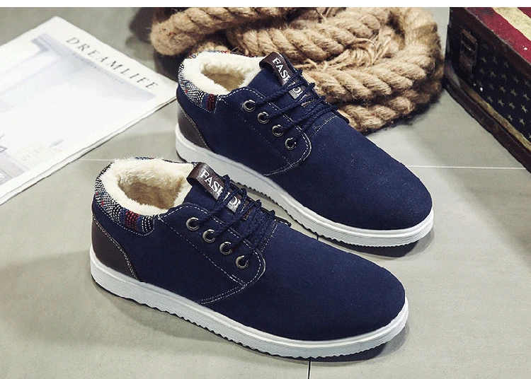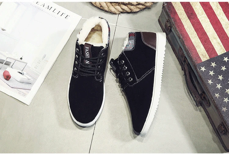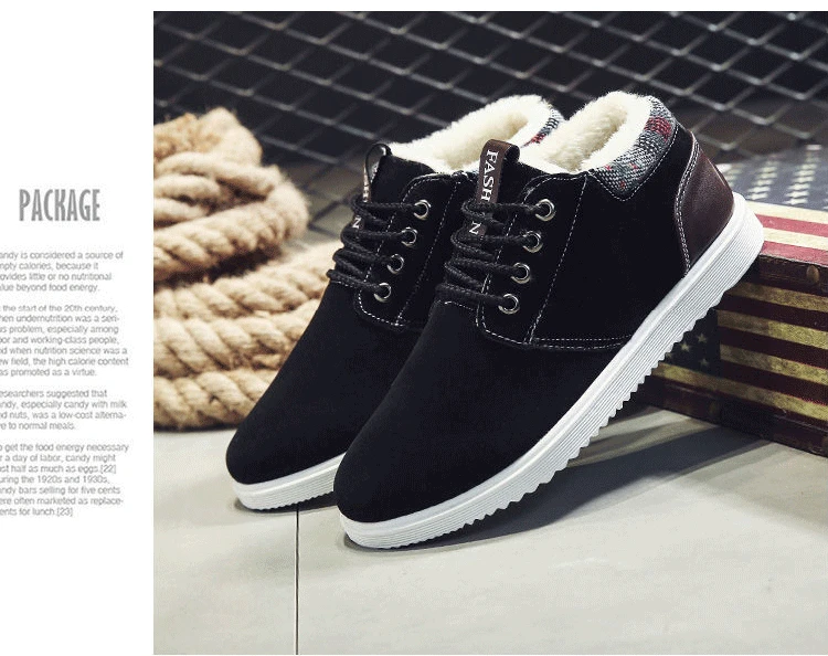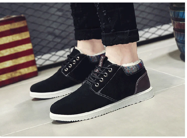 Мужские Теплые ботильоны на шнурках, повседневные ботинки из хлопка и плюша, Новое поступление, зима 2019