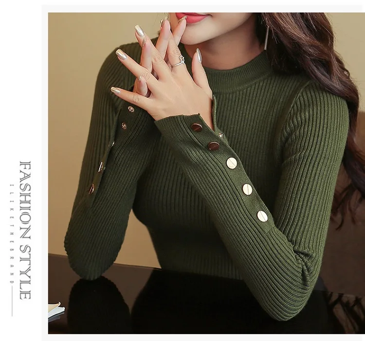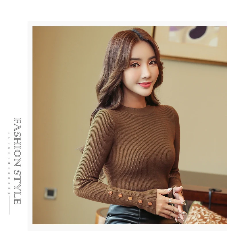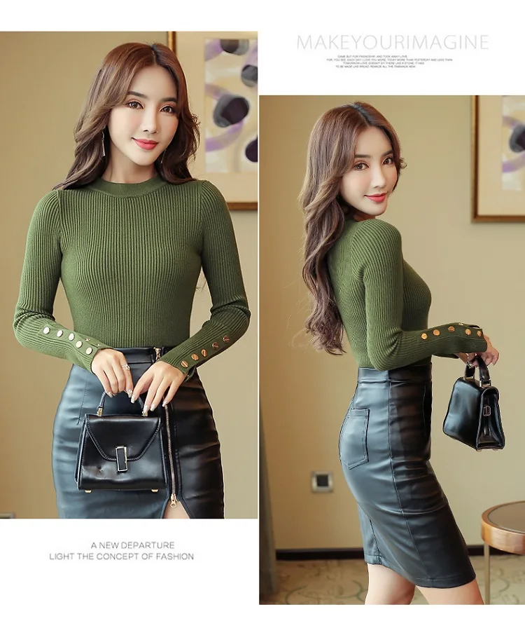 Женский трикотажный свитер на пуговицах, повседневный облегающий офисный свитер с длинным рукавом и круглым вырезом, весна-осень 2019