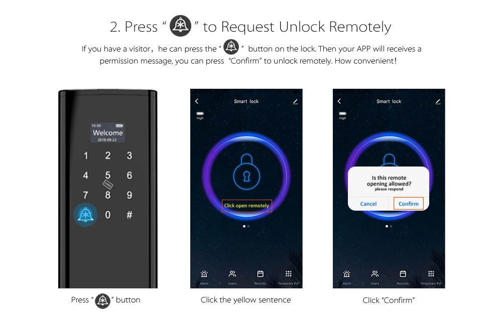 ● Нажмите «дверной звонок» на клавиатуре Удаленная разблокировка
