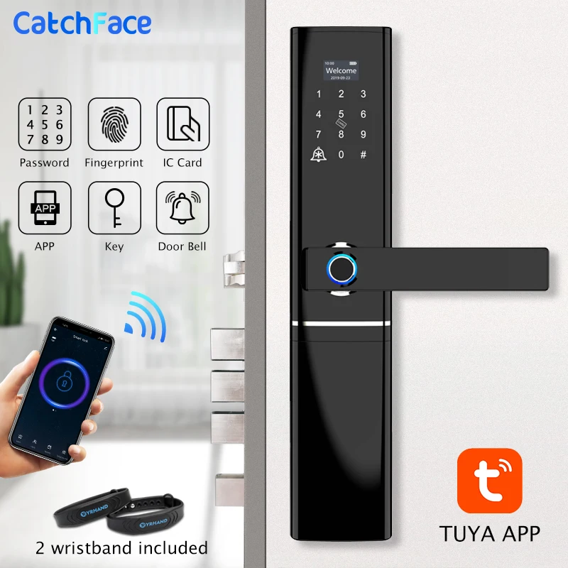 Умный дверной замок Tuya со сканером отпечатков пальцев, кодовый RFID-ключ, цифровой электронный замок с дверным звонком, блокировка для домашней безопасности