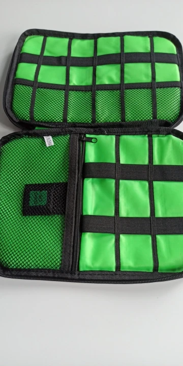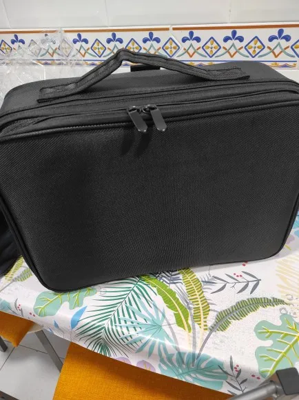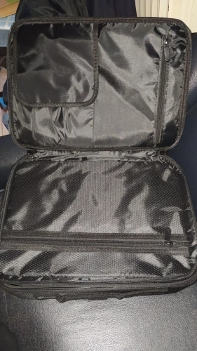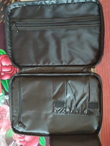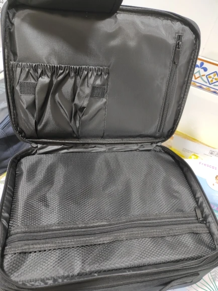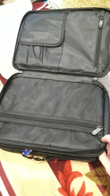 Качественная сумка. Очень доволен этим. Жаль, что они не использовали прозрачный пластик в качестве мешков с молнией. Это сделает его еще более удобным. Карман на молнии во втором слое не очень полезен, так как содержимое не видно. Но это дизайн производителя, поэтому не имеет ничего общего с продавцом. Действительно, очень функциональная сумка. Хороший продавец. Быстрая доставка. Он прибыл в течение 11 дней.