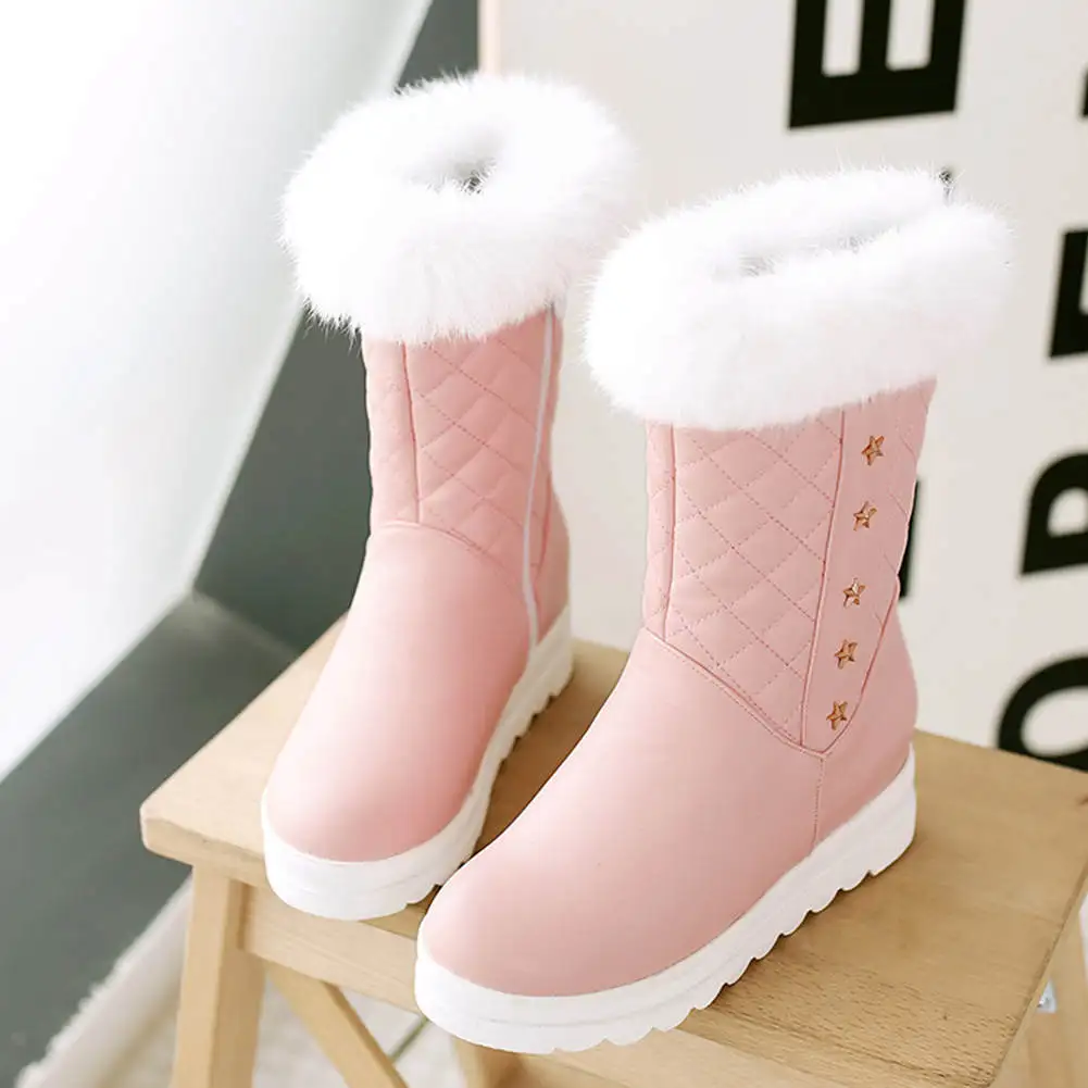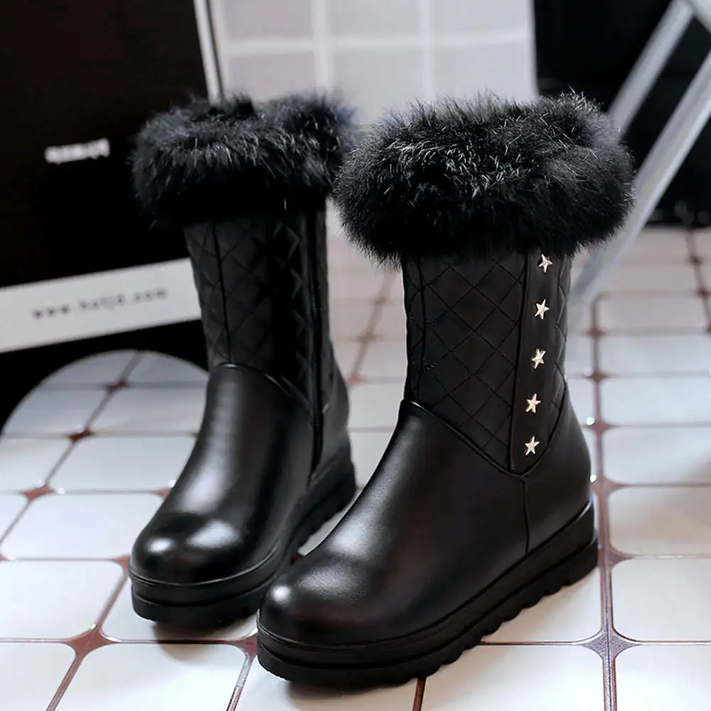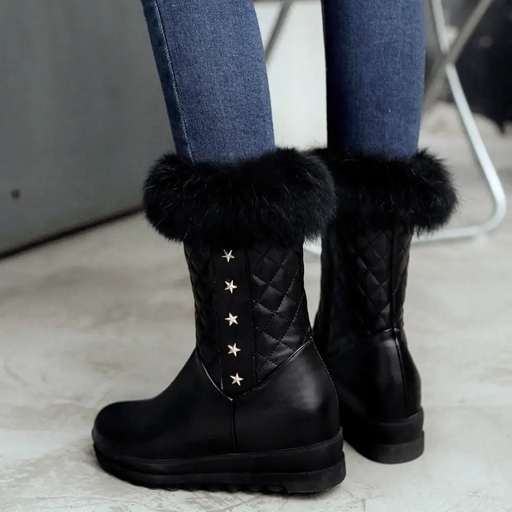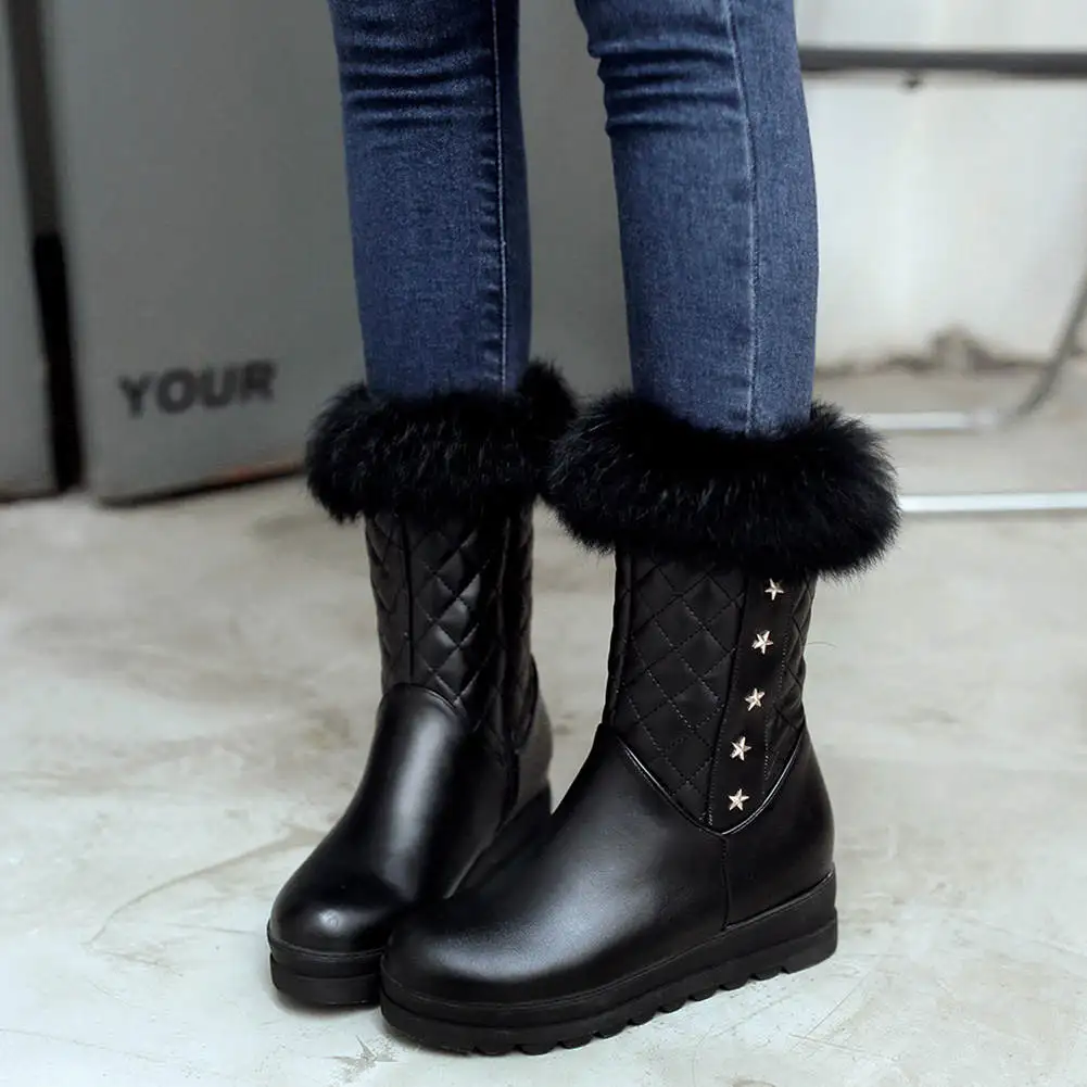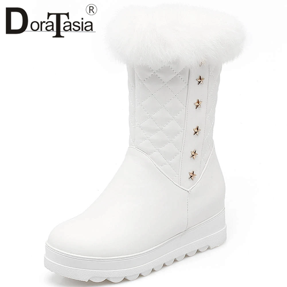 DORATASIAБольшой размер 34-43 женские ботинки с PU искусственным мехом модная обувь с украшением в виде пряжки женская нескользящая обувь для женщин Повседневные Вечерние женские зимние сапоги на каблуке