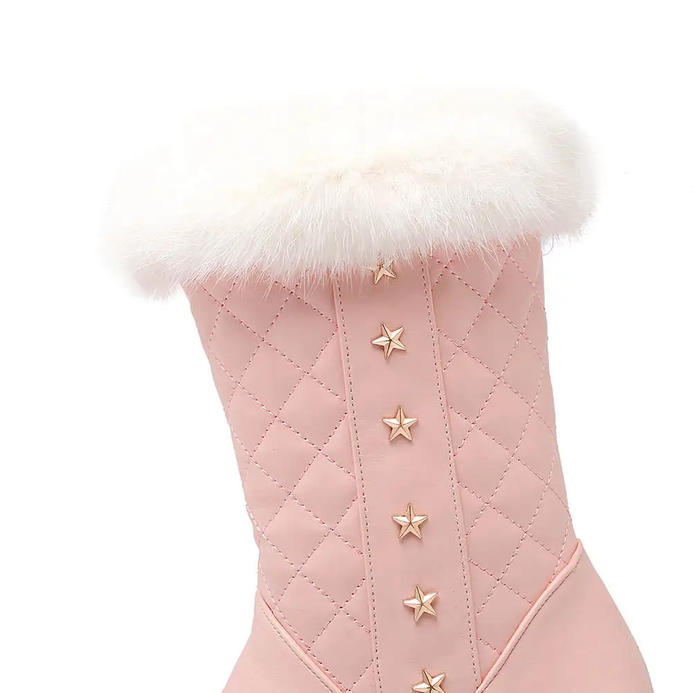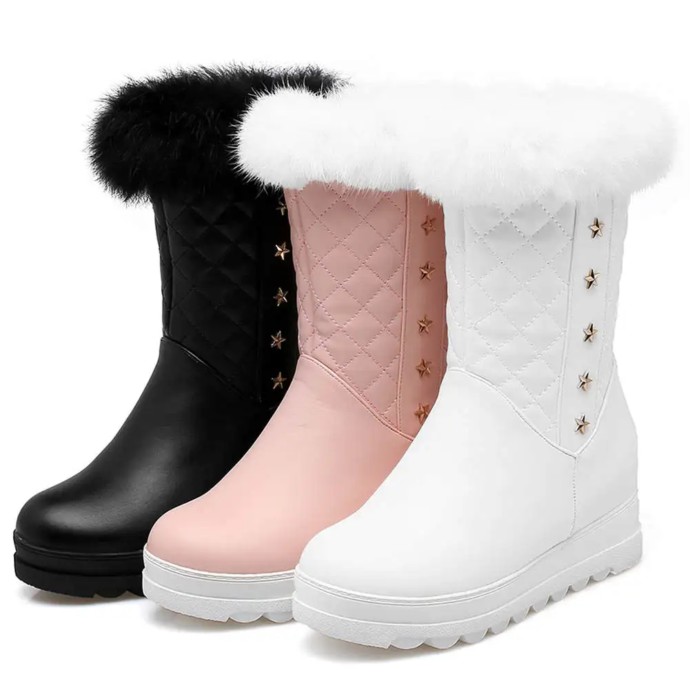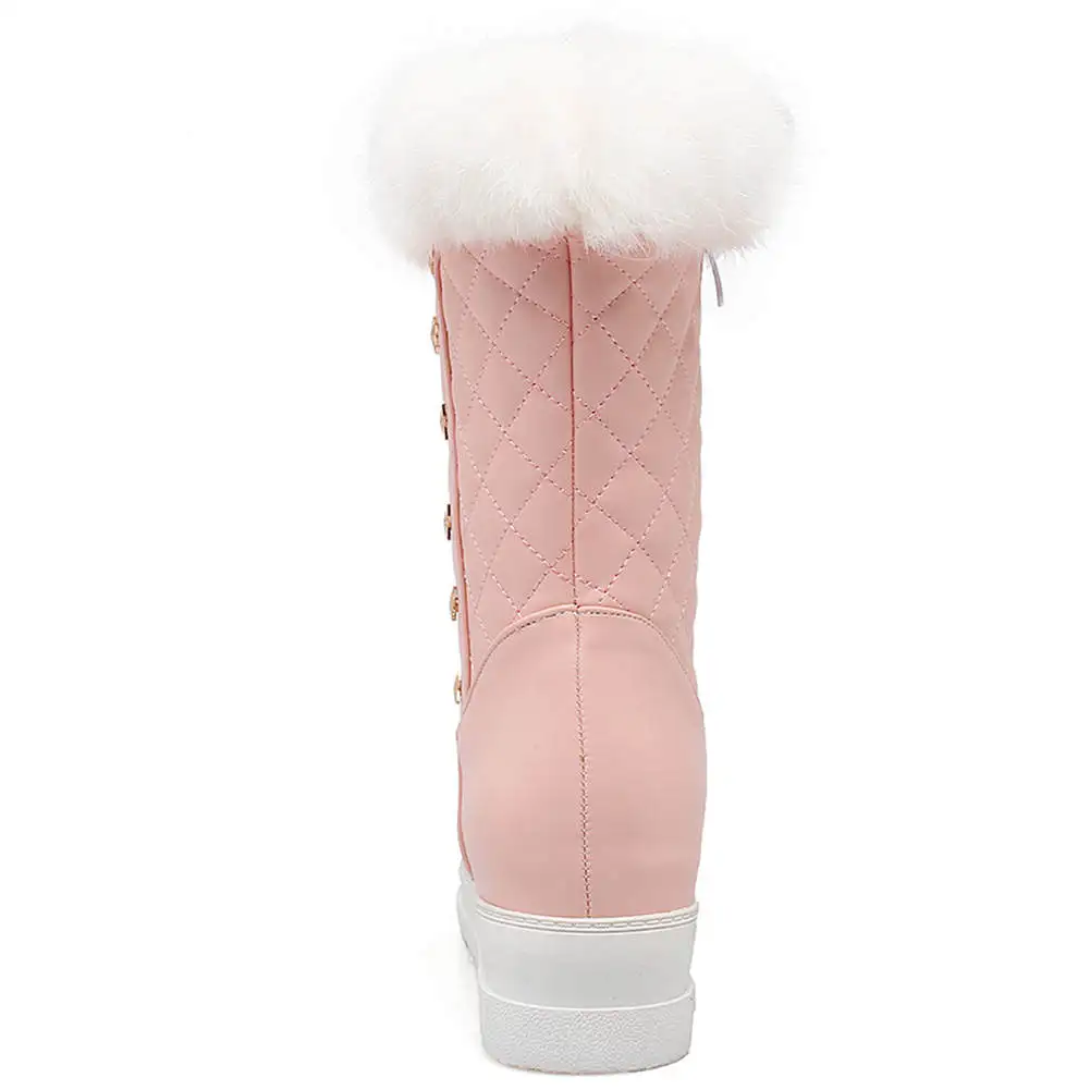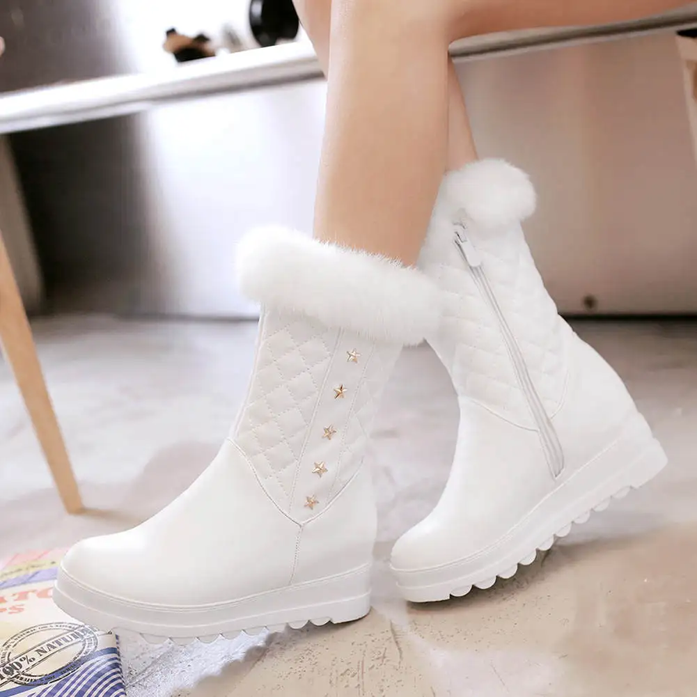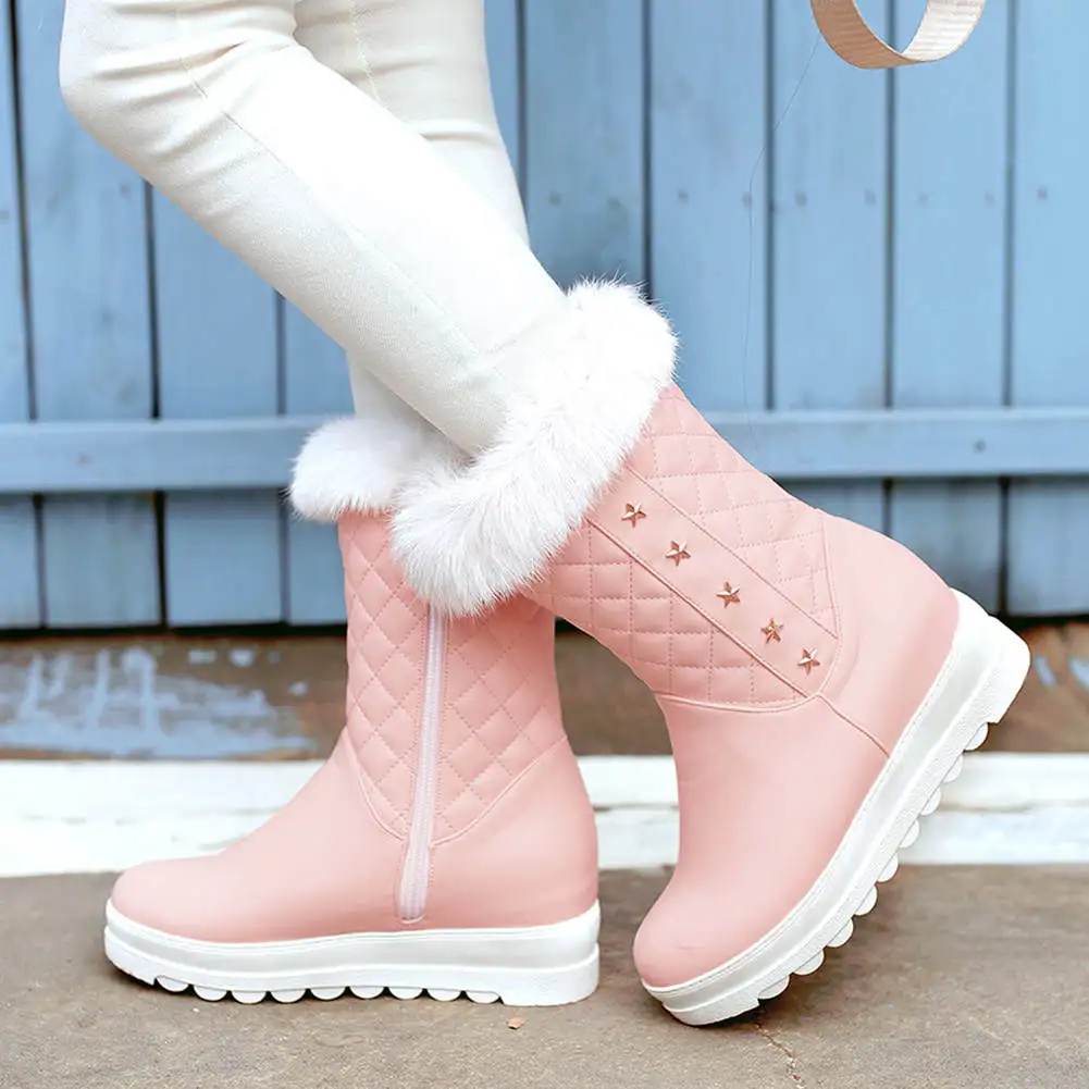DORATASIAБольшой размер 34-43 женские ботинки с PU искусственным мехом модная обувь с украшением в виде пряжки женская нескользящая обувь для женщин Повседневные Вечерние женские зимние сапоги на каблуке