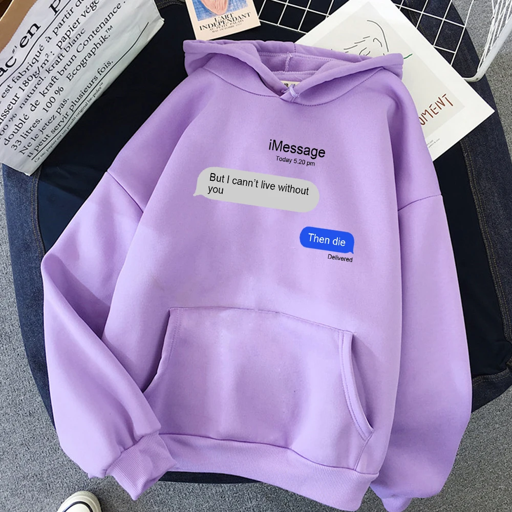 Толстовка Оверсайз с надписью, Женская толстовка с длинным рукавом, пуловер фиолетового цвета, Мужская свободная толстовка с капюшоном