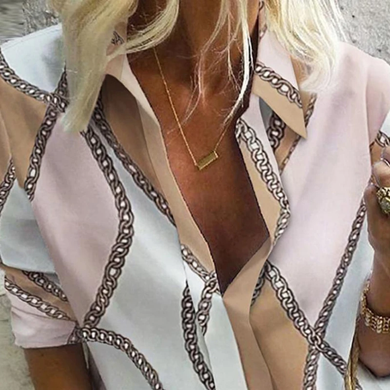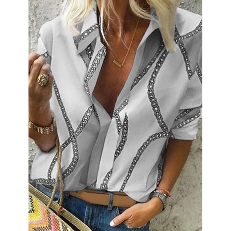 Блузка и рубашка с принтом цепей, женские модные блузки, 2021, винтажная рубашка с длинным рукавом, Женские топы и блузка, Женский Топ