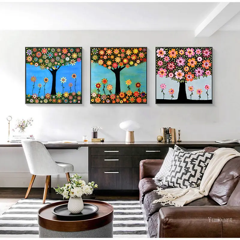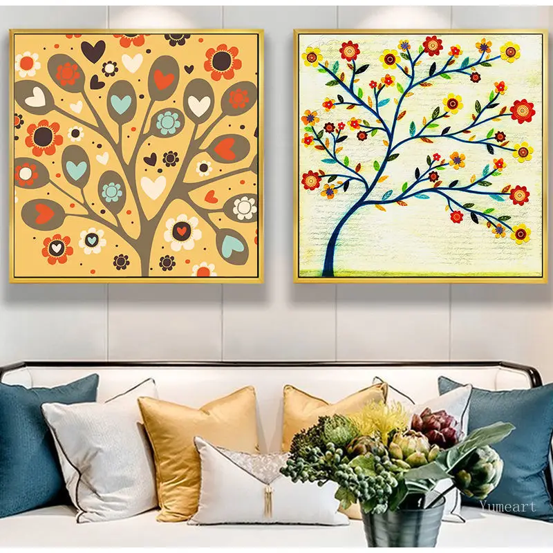 Картина на холсте, с изображением прекрасных цветов и деревьев, абстрактное дерево