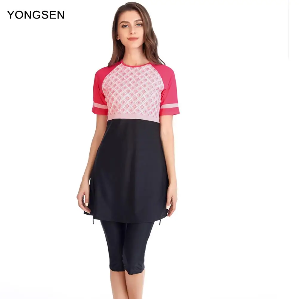 Мусульманский купальник YONGSEN, спортивный купальник с коротким рукавом, мусульманская одежда, купальный костюм, женский скромный хиджаб в стиле пэчворк