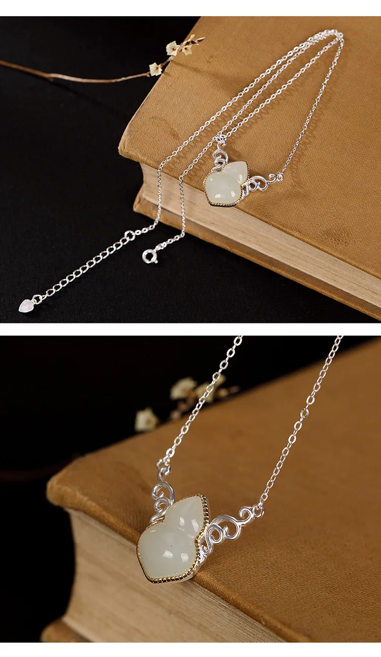 Uglyless Летающая подвеска в виде тыквы для женщин Настоящее серебро 925 пробы ожерелья + цепочки натуральный нефрит ювелирные изделия драгоценные камни P731