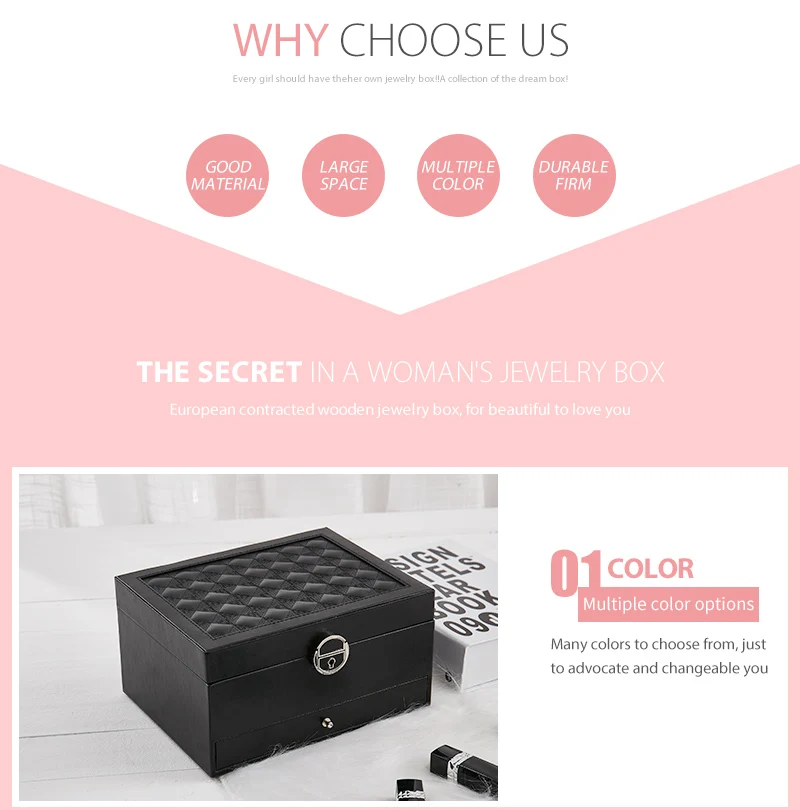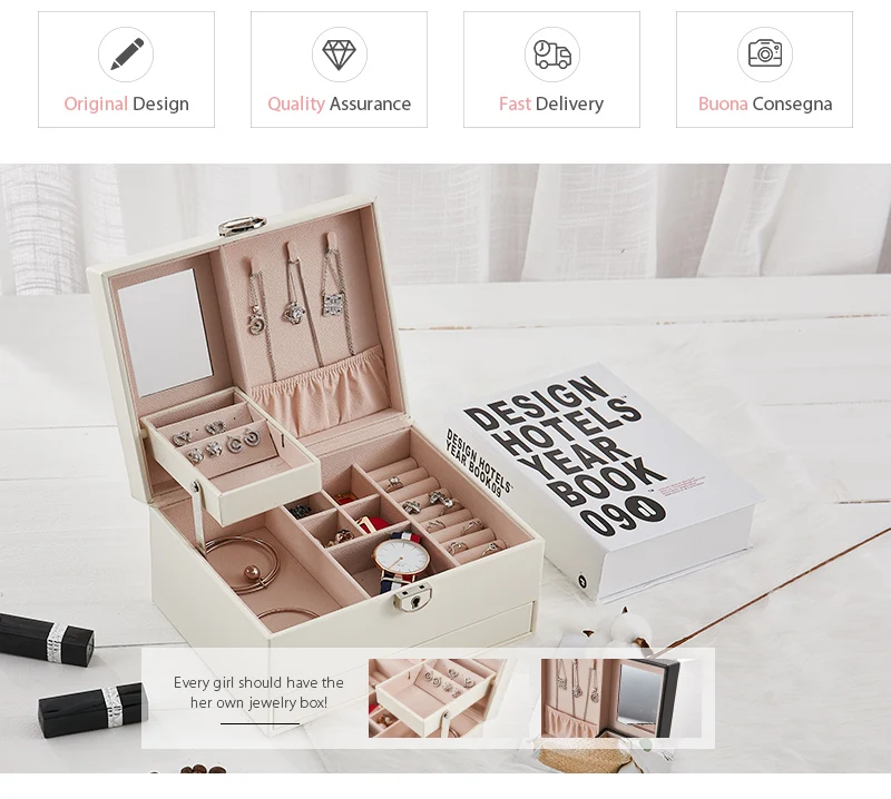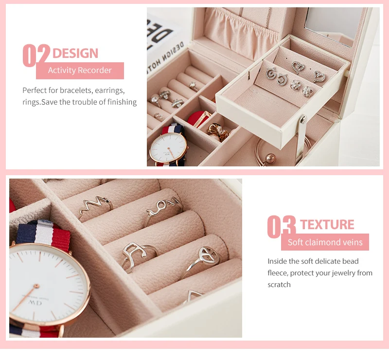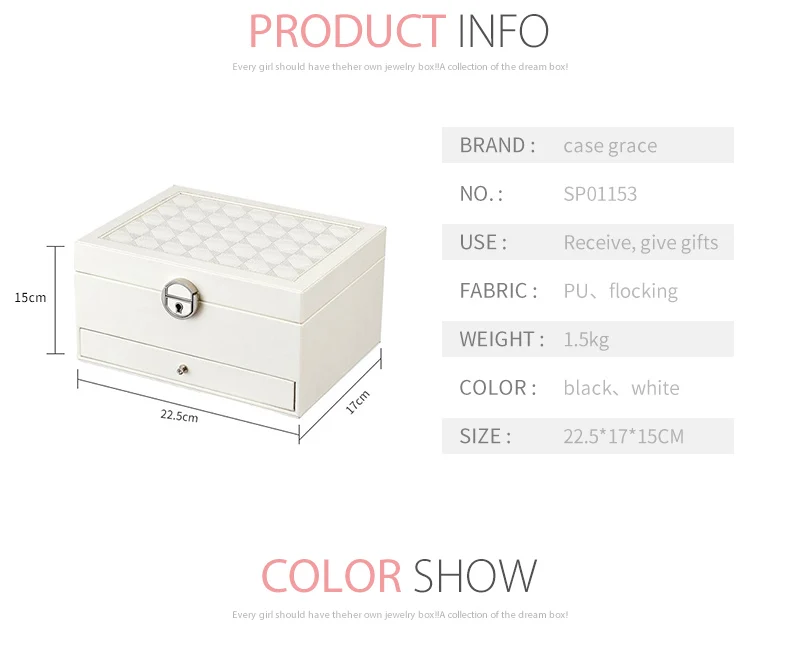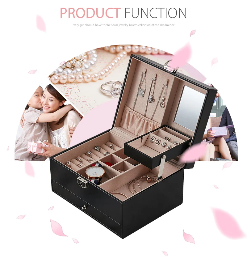 Чехол grace, большой ящик из искусственной кожи, ящик для хранения ювелирных изделий, 3 слоя, женские бархатные серьги, кольцо, ожерелье, ювелирный чехол, органайзер, шкатулка