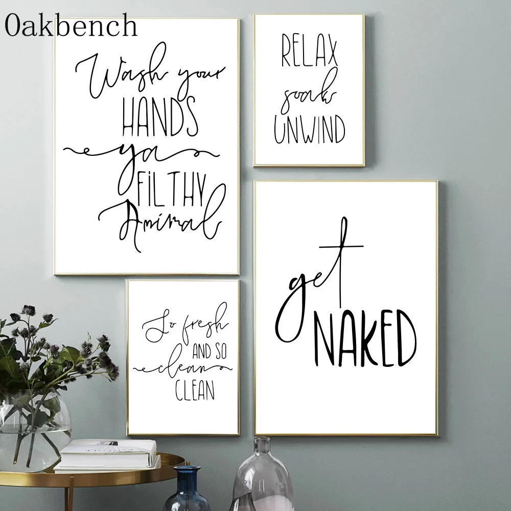 Скандинавский знак для ванной комнаты, холст, живопись, настенное искусство, получить обнаженное искусство, печать, живопись, цитаты, плакат, печать, настенные картины для украшения для ванной комнаты