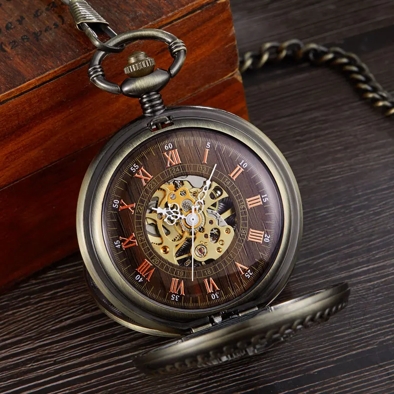 Винтажные Механические карманные часы Phoenix Bird с римскими цифрами скелетоны, мужские наручные часы с цепочкой, двойной чехол