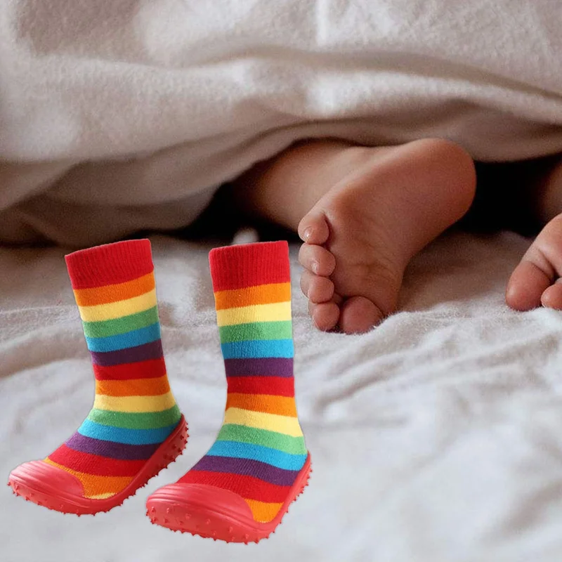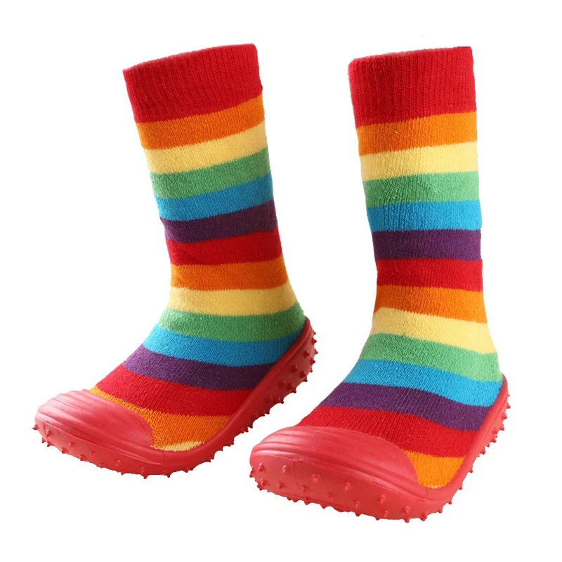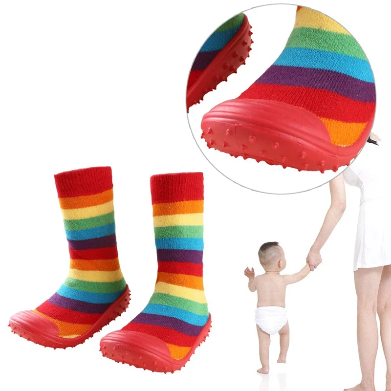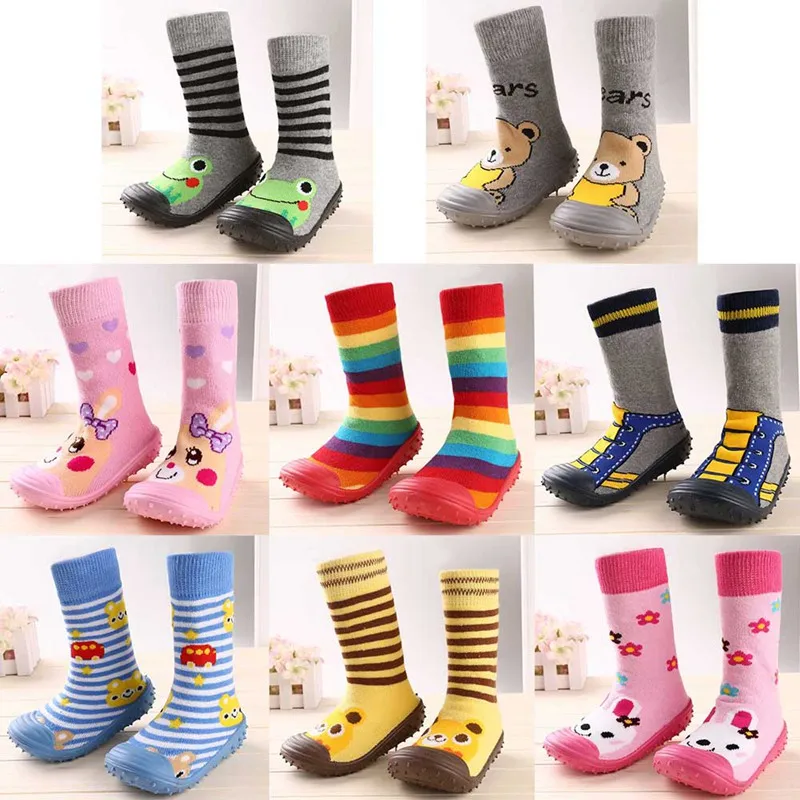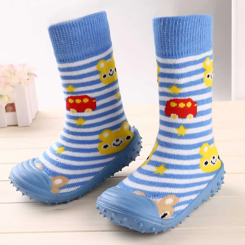 Носки для новорожденных мальчиков и девочек с нескользящей мягкой резиновой подошвой, уличные носки для малышей, детские носки-тапочки с рисунками животных