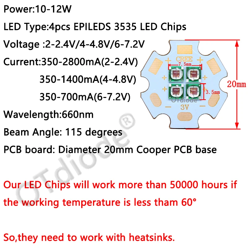 Светодиодный Диод, 10 Вт, 12 Вт, 3535, 3 в, 6 в, 12 В, EPI LED S 3535, ярко-синий, 450 нм, темно-красный, 660нм, светодиодная лампа для роста растений, светодиодный излучатель для сада