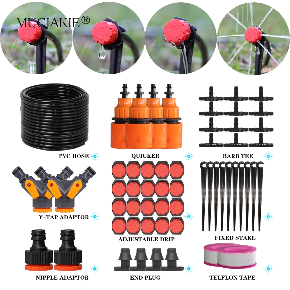 MUCIAKIE 60M Регулируемая садовая капельная система для орошения бонсай Набор для полива 47 мм новая модель из ПВХ фоторазъем капельницы тройник фитинг