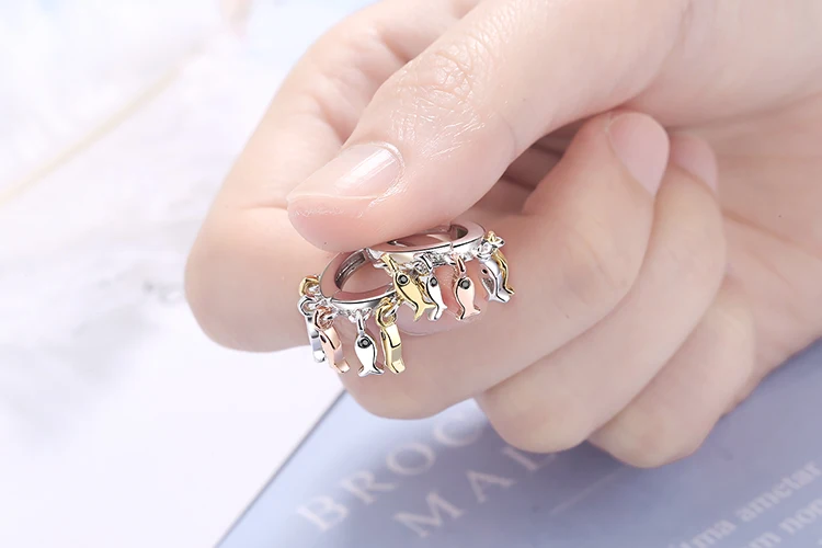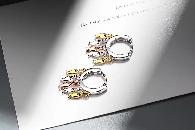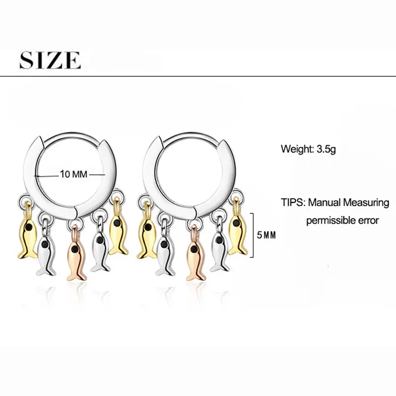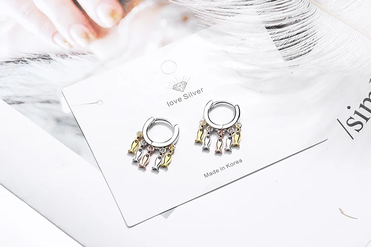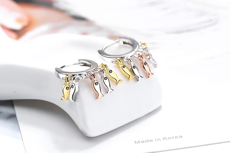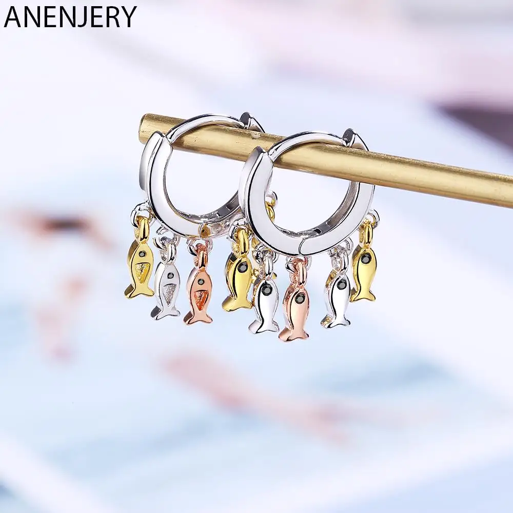 Женские серьги-кольца в виде маленькой рыбы ANENJERY, Серебристые серьги в виде животных, три цвета, уникальный дизайн, ювелирные изделия для вечерние, для подарка